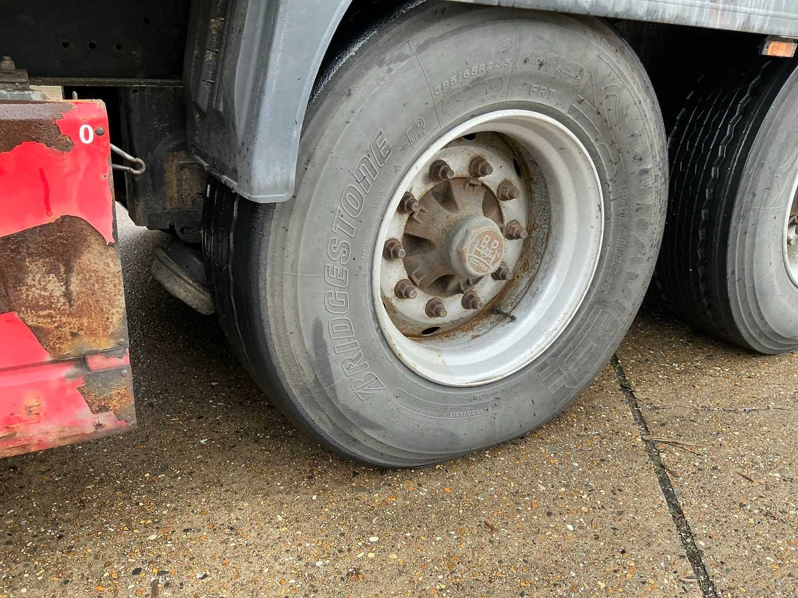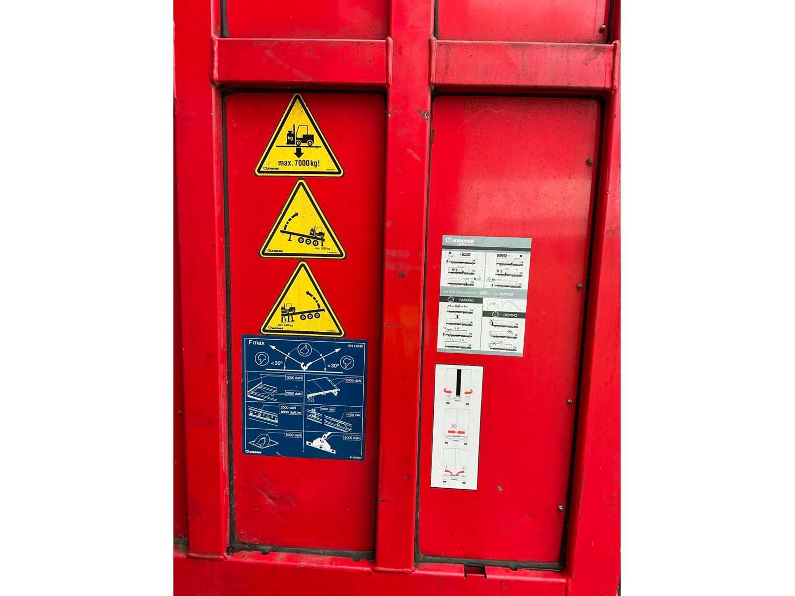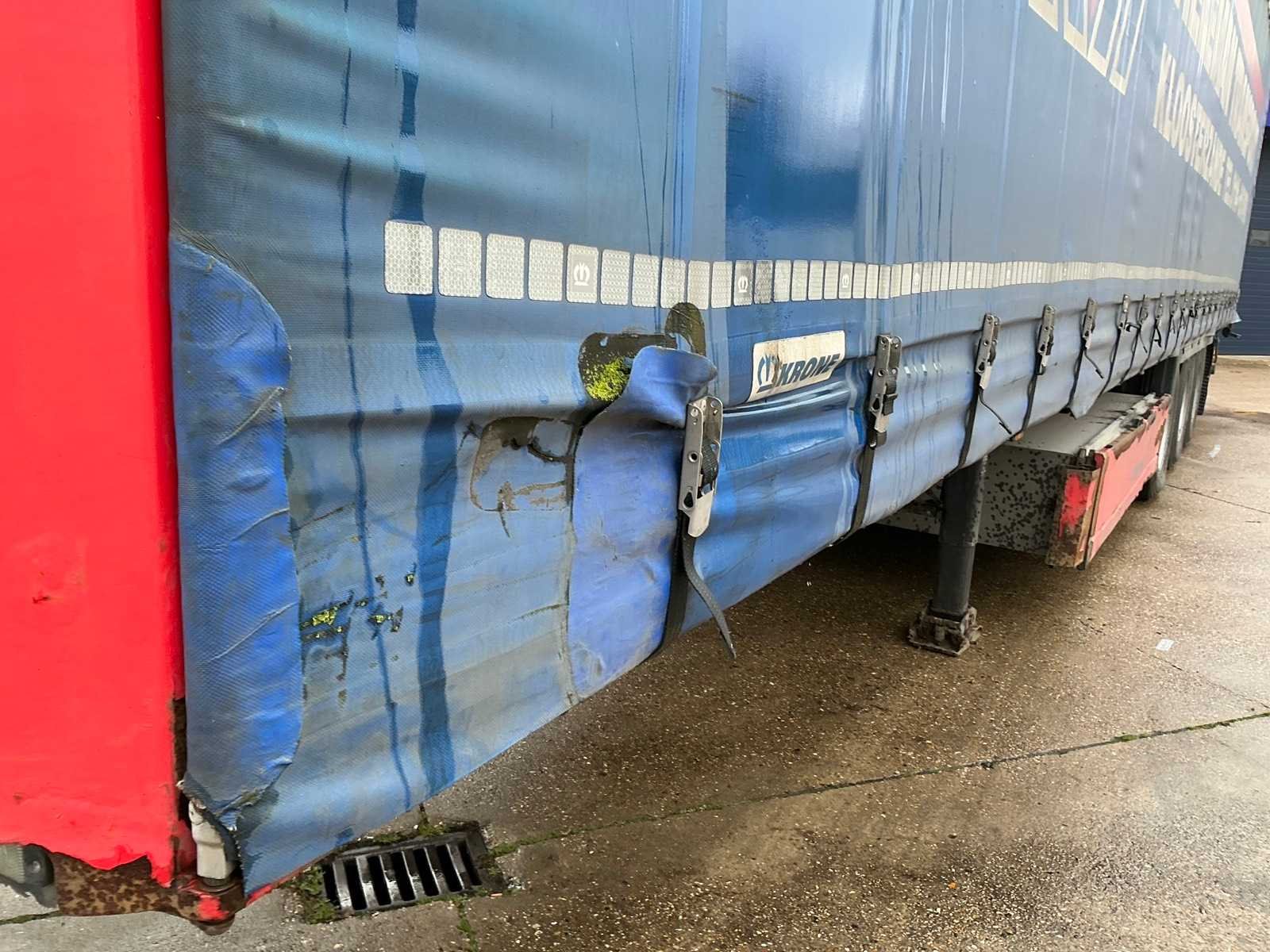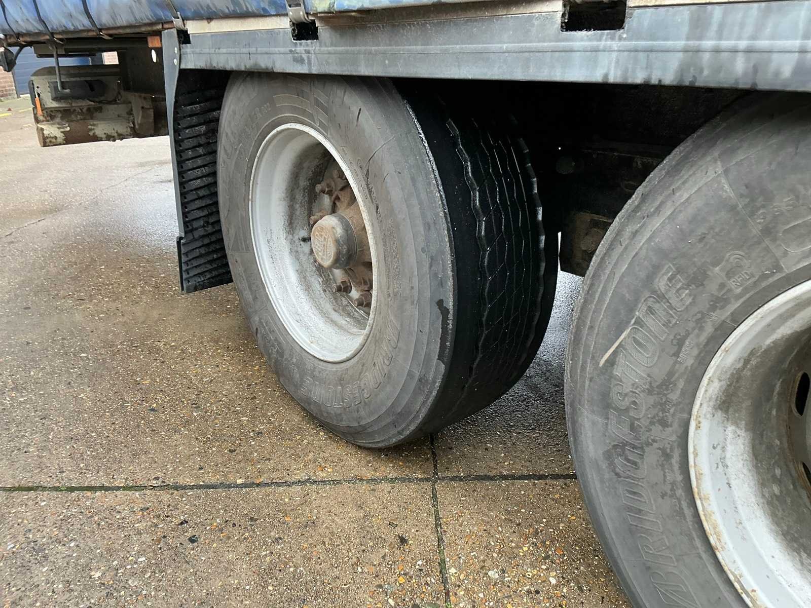 Max massa 41000kg, Afstand hart koppeling tot achterzijde voertuig 1200cm; Wielbasis 879 cm; 1e as is hefas; Voorzien van luchtgeveerde BPW assen, 1e as is lift-as, schuifzeilen, zijborden, schuifdak en palletkist, bandenmaat 385/65R22.5, zonder de inhoud. Nee Merk: Krone Type: SD Type aanhangwagencarrosserie: Tautliner Bouwjaar: 2015 Chassisnummer VIN: WKESD000000644172 Kenteken: ON-56-NR Datum eerste toelating (NL): 2015-01-06 Datum eerste toelating: 2015-01-06 APK vervaldatum: 2026-01-07 Aantal assen: 3 Laadvermogen: 34111kg Eigen gewicht: 6889kg Totale afmeting L: 13860mm Totale afmeting Breedte: 2550mm Zelf rijdend exporteren: Nee No self drive export!: true