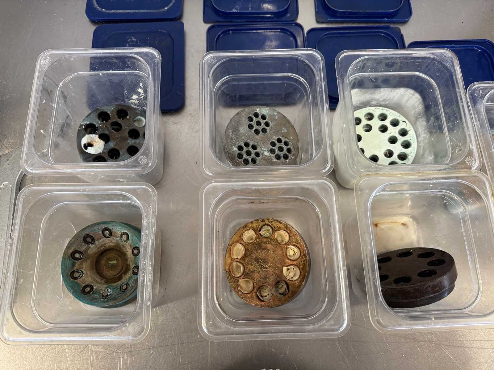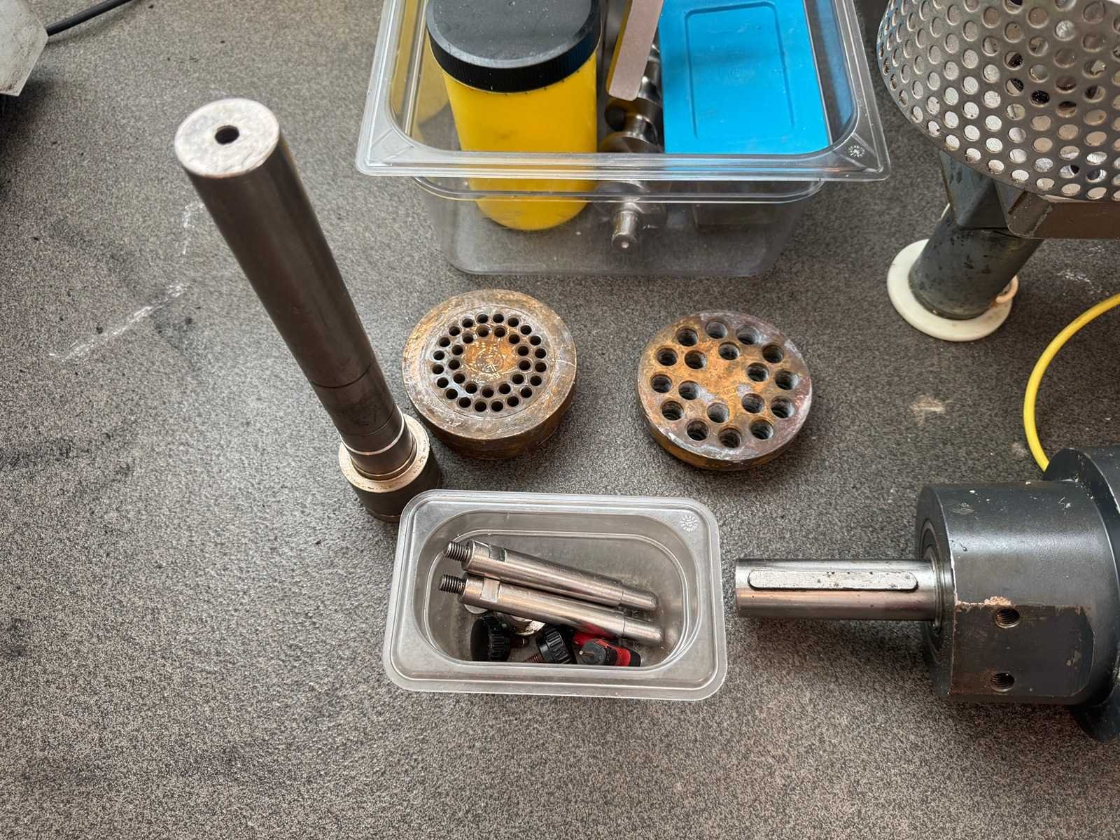 Incl. onderdelen, diverse snijkoppen en mallen, en kratten zoals op foto. Nee Merk: Dominioni Model: P55R Lengte: 750mm Breedte: 950mm Hoogte: 1530mm