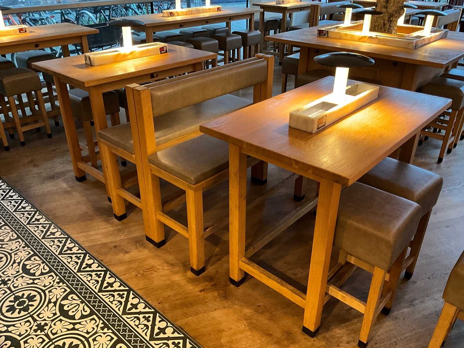 Bartafel met marmeren opbouw en verlichting. Afmeting bank: 125x50x112 cm, zithoogte 73 cm. Afmeting krukken 37x37x75 cm. De tafel is reeds ontkoppeld van de vloer en elektra. Hiervoor zijn de additionele kosten van toepassing. Nee Merk: Hutten Totale afmeting L: 1250mm Totale afmeting Breedte: 800mm Totale afmeting Hoogte: 1050mm Hout: true