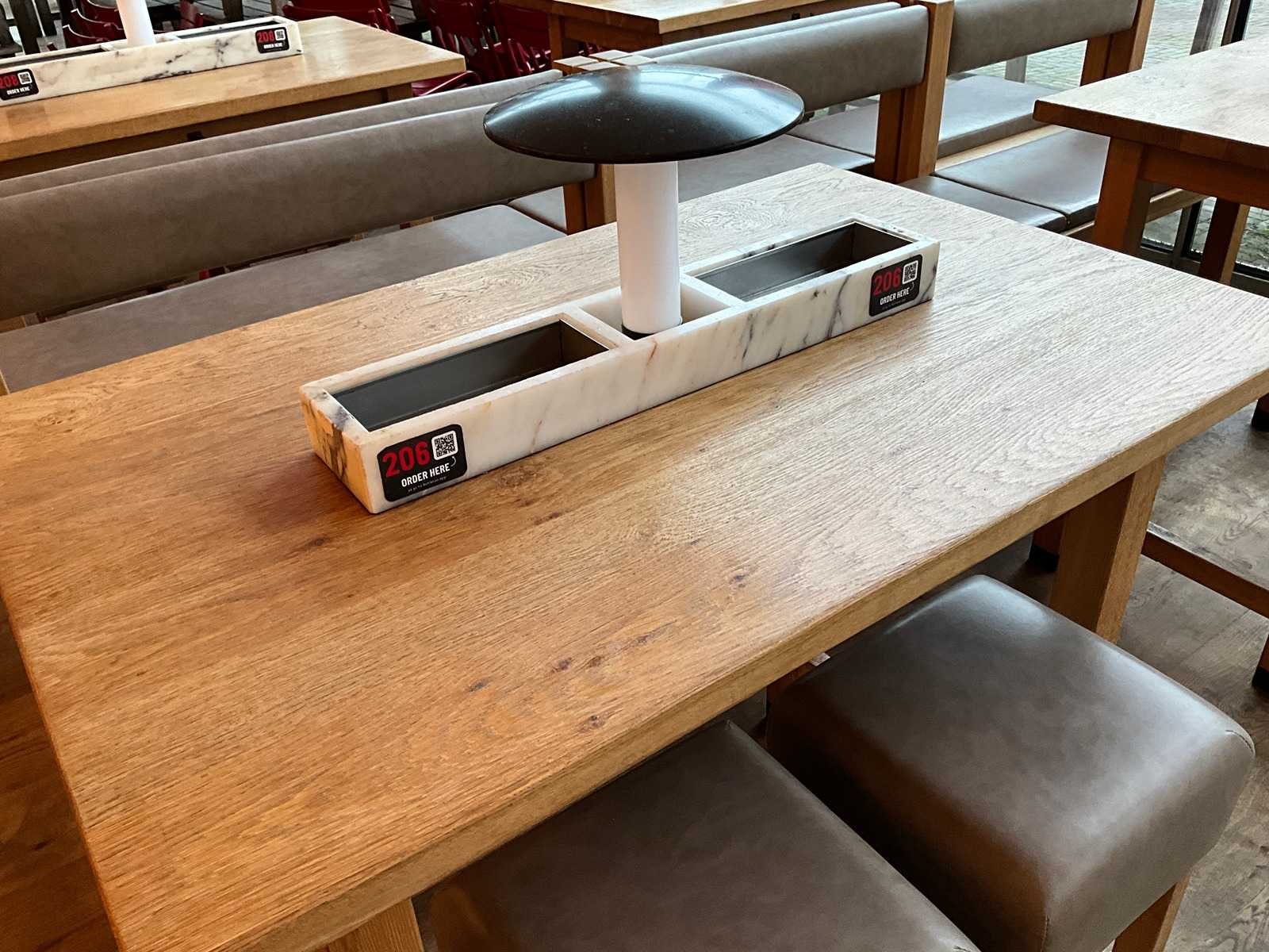 Bartafel met marmeren opbouw en verlichting. Afmeting banken: 1x bank 125x50x112 cm en 1x bank 180x50x112 cm. Zithoogte 73 cm. Afmeting krukken 37x37x75 cm. De tafel is reeds ontkoppeld van de vloer en elektra. Hiervoor zijn de additionele kosten van toepassing. No Merk: Hutten Totale afmeting L: 1250mm Totale afmeting Breedte: 800mm Totale afmeting Hoogte: 1050mm Hout: true