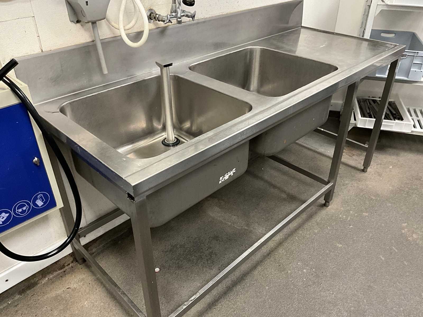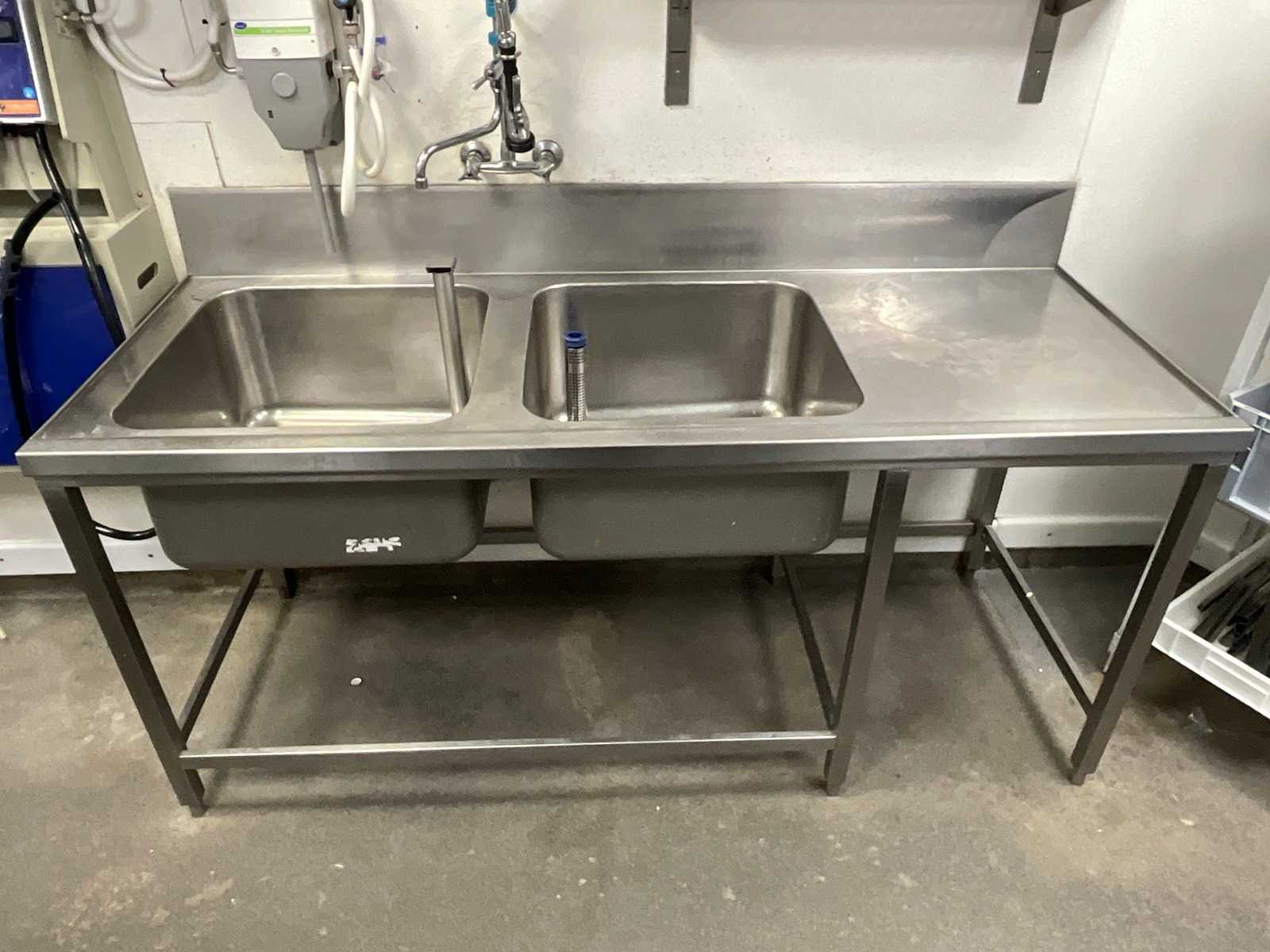 Afmeting bakken: 60x60x30 cm. Incl. voorspoeldouche en dispensers. De koper is zelf verantwoordelijk voor het professioneel demonteren van de kavel. Kavel kan aangesloten zijn op het elektra-, water- en/of gasleidingnetwerk. Bekabeling en/of leidingen dienen netjes afgedopt en ordelijk achter gelaten te worden. Schade aan het pand of andere zaken zal op de koper worden verhaald. Wij adviseren u gebruik te maken van de kijkdag om een plan voor demontage op te stellen. Nee Aantal spoelbakken: 2pcs Spoelkraan: true Rvs: true Lengte: 200cm Breedte: 75cm Hoogte: 113cm