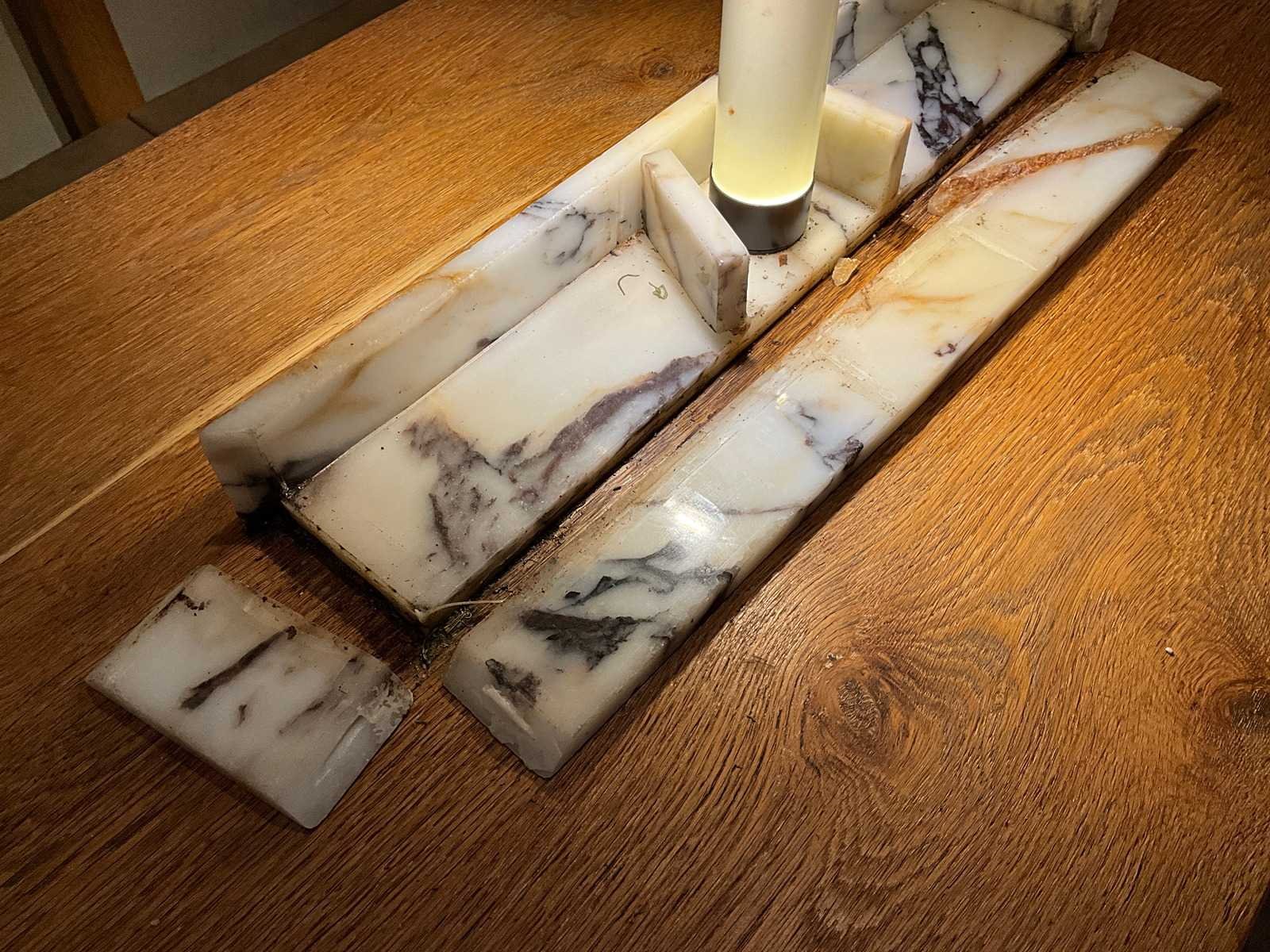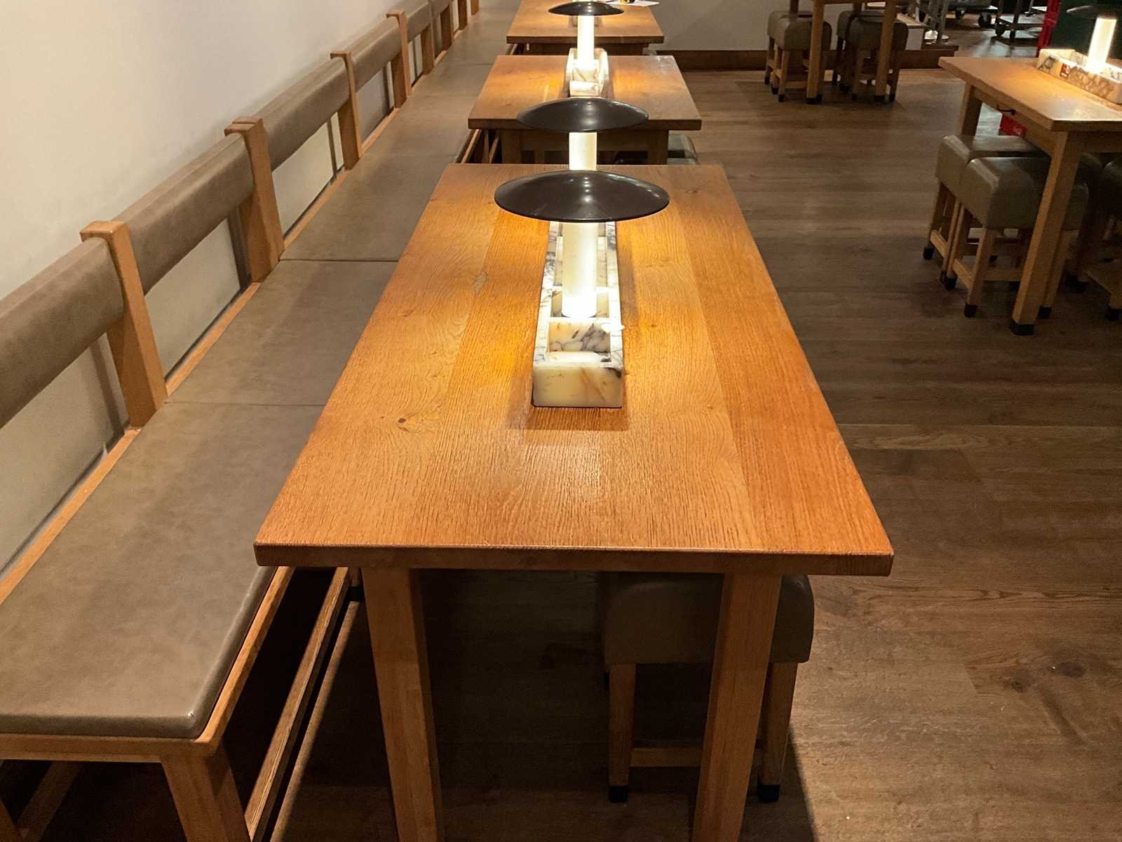 Set van 2 halfhoge tafels met marmeren opbouw en verlichting (afmetingen 125x80x87 en 180x80x87 cm), 2 banken (aan de vloer bevestigd) (afmetingen 240x50x96 cm, zithoogte 57 cm) en 5 krukken (afmetingen 37x27x57 cm). LET OP! Van 1 tafel is de marmeren opbouw kapot. De tafel zijn reeds ontkoppeld van de vloer en elektra. Hiervoor zijn de additionele kosten van toepassing. De koper is zelf verantwoordelijk voor het professioneel demonteren van de kavel. Wij adviseren u gebruikt te maken van de kijkdag om een plan voor demontage op te stellen. Schade aan het pand of andere zaken zal op de koper worden verhaald. Nee Merk: Hutten Hout: true