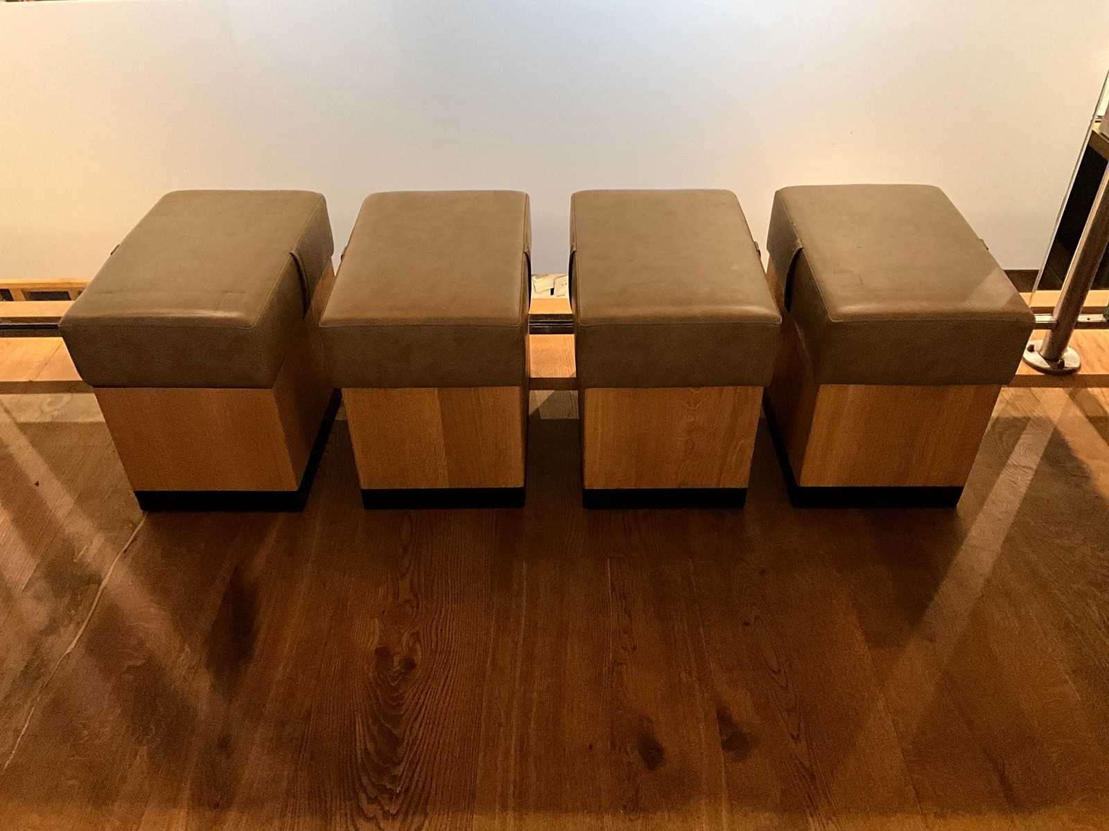Hutten - houten poef met lederen zitting (4x)