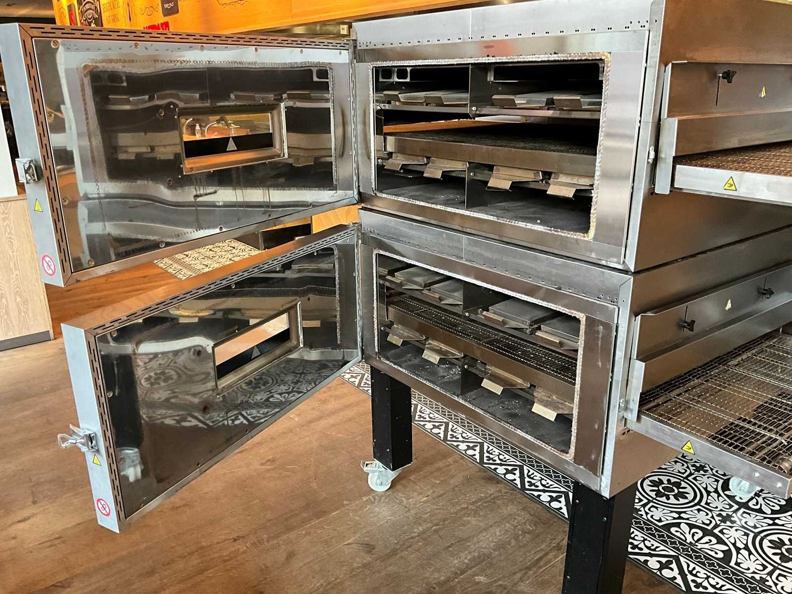 Oven met 2 gestapelde Moretti Forni TT98E modulaire elektrische tunnelovens, en een mobiel onderstel. De specificaties in vermeld bij de informatie, gelden per oven. Nee Merk: Moretti Forni Type: TT98E Digitale besturing: true Aansluiting: 400V Rvs: true Vermogen: 21,8kW Elektrisch: true Lengte: 200cm Breedte: 147cm Hoogte: 185cm