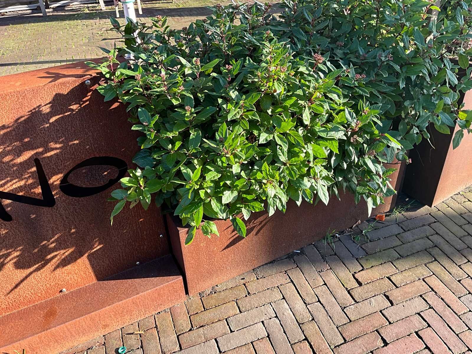 Plantenbak: 120x45x40 cm. V.v. 3 stuks Lechuza Cubico 40 binnenpot met inhoud. Terrasafscheiding: 150x45x100 cm. Nee