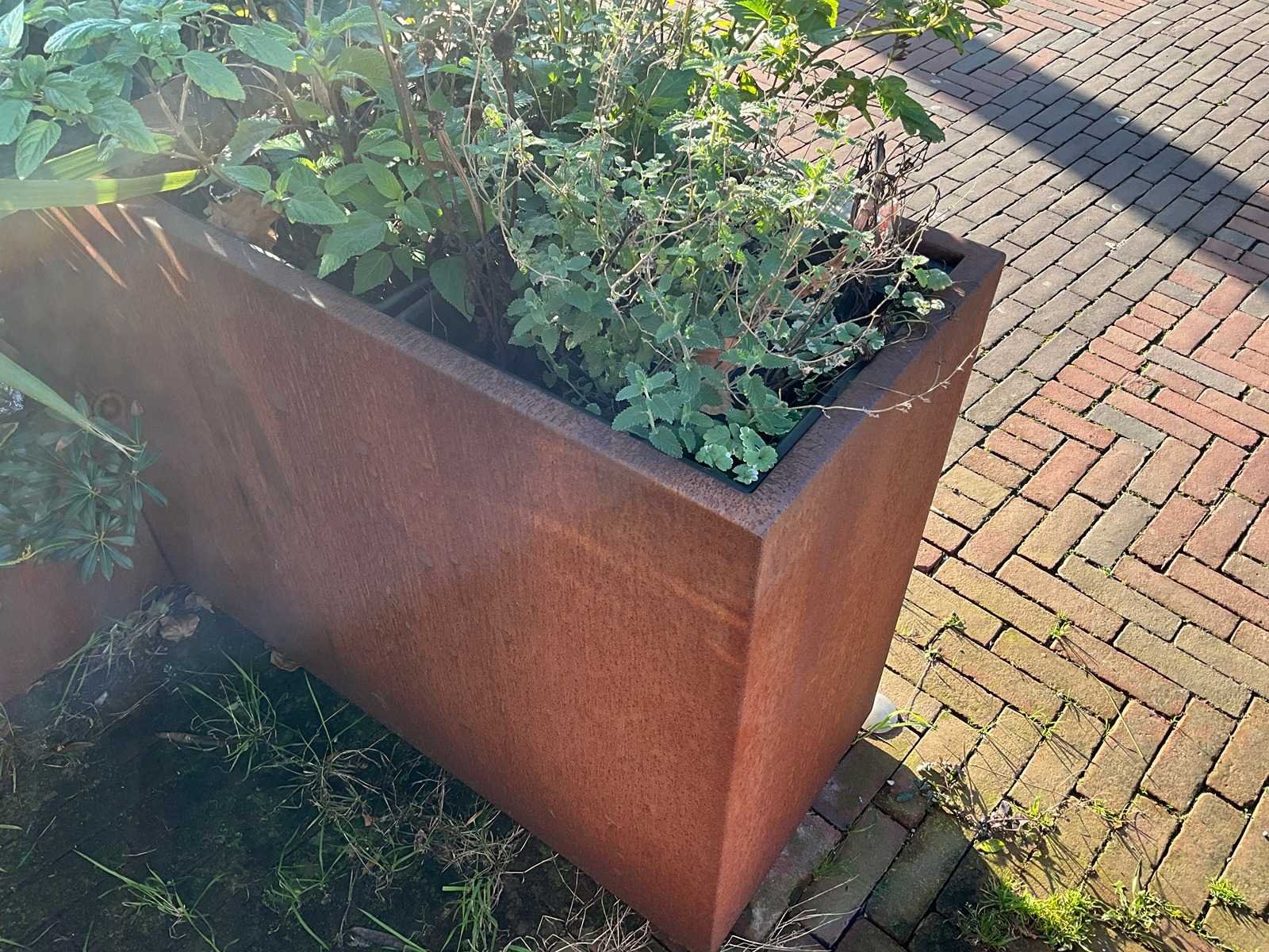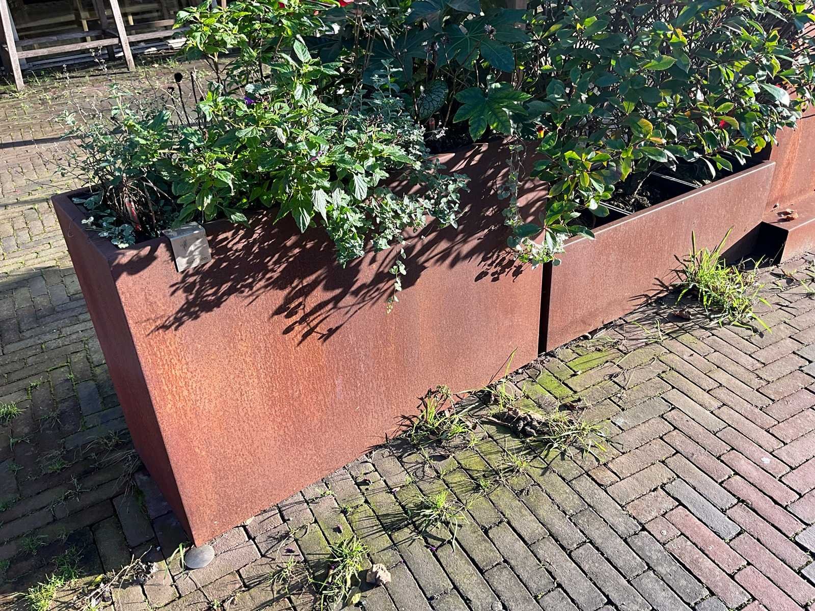 Metalen plantenbak v.v. 3 stuks Lechuza Cubico 40 binnenpot. 1x hoogte 80 cm. 1x hoogte 40 cm. Nee Lengte: 120cm Breedte: 45cm