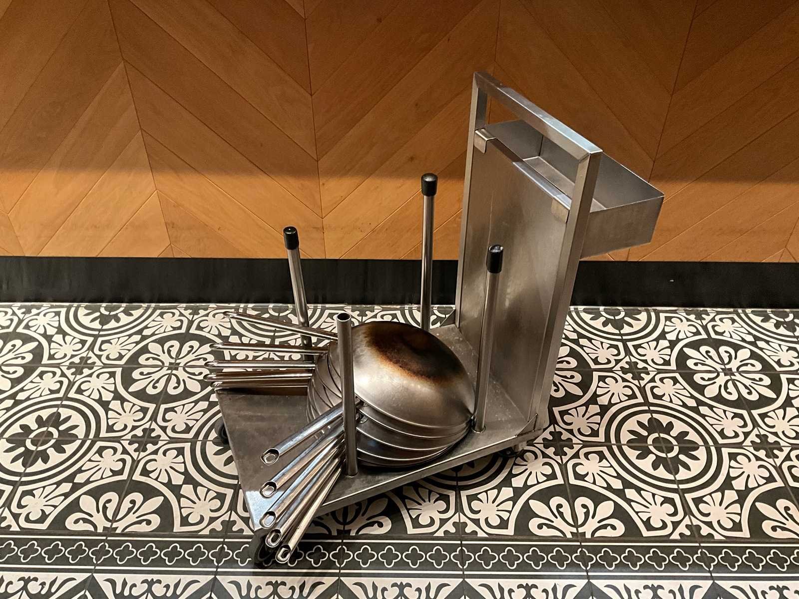 Rvs transportkar met 10x rvs wokpan