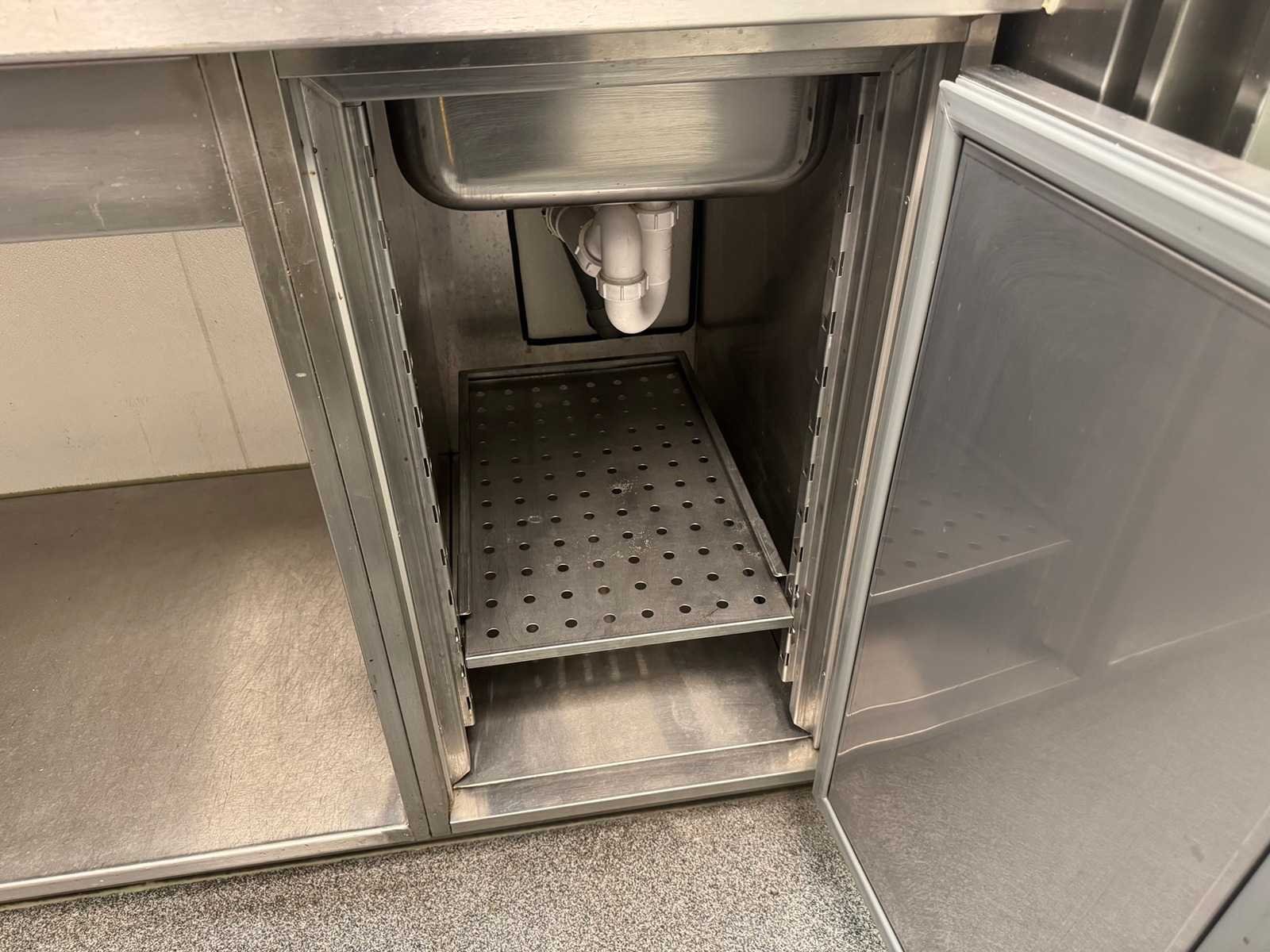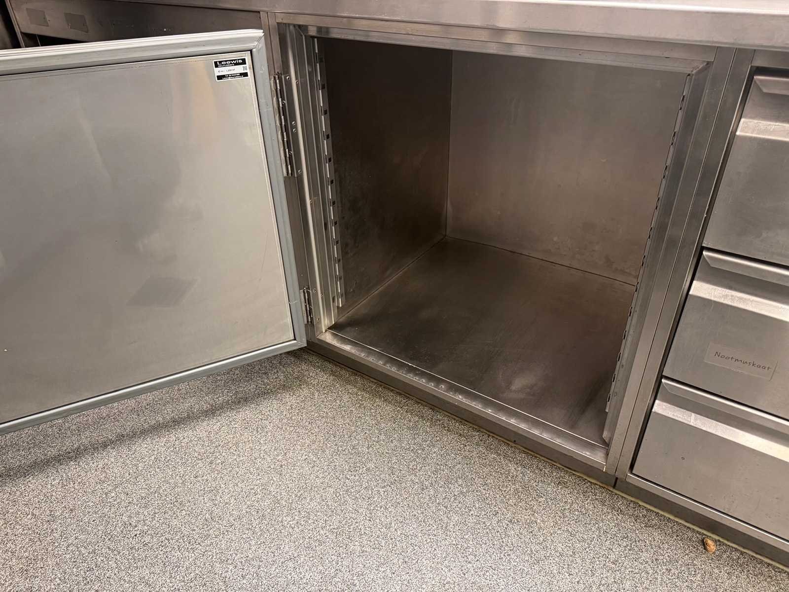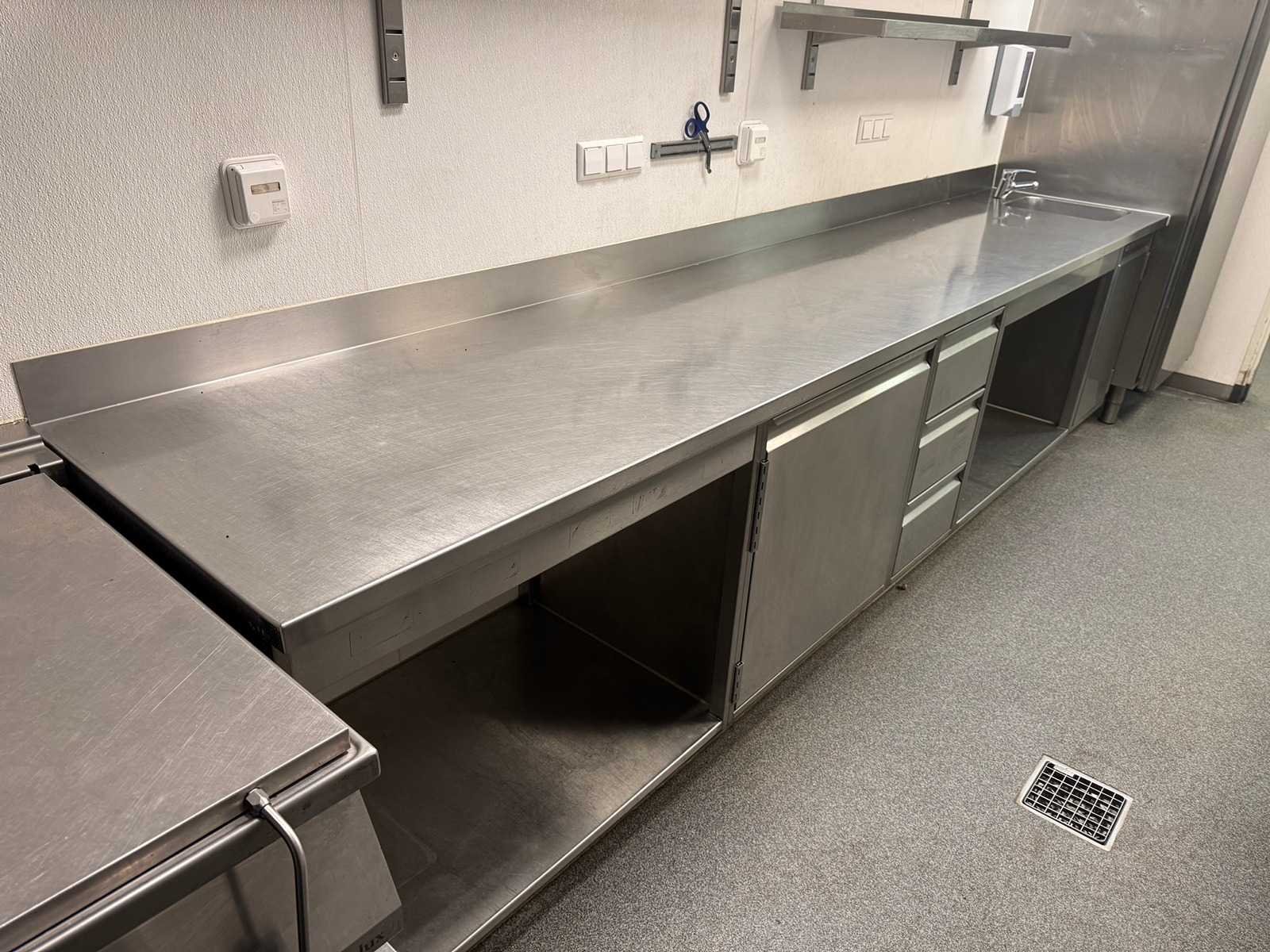 De koper is zelf verantwoordelijk voor het professioneel demonteren van de kavel. Kavel kan aangesloten zijn op het elektra-, water- en/of gasleidingnetwerk. Bekabeling en/of leidingen dienen netjes afgedopt en ordelijk achter gelaten te worden. Schade aan het pand of andere zaken zal op de koper worden verhaald. Wij adviseren u gebruik te maken van de kijkdag om een plan voor demontage op te stellen. Nee Aantal spoelbakken: 1pcs Spoelkraan: true Rvs: true Lengte: 372cm Breedte: 70cm Hoogte: 90cm