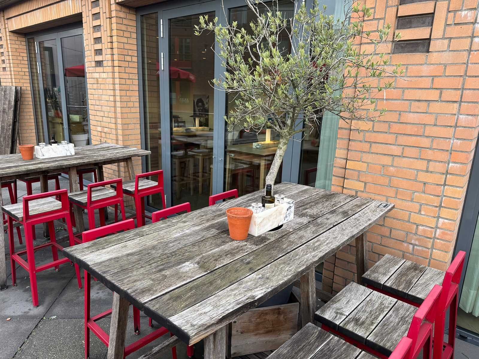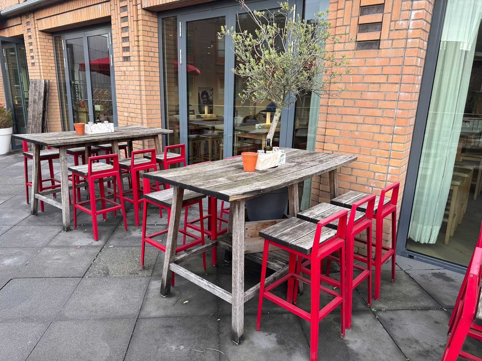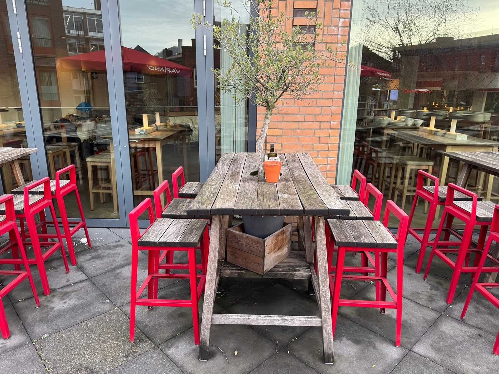 Terras bartafel met 8 barkrukken met rugleuning. Inclusief boompjes. LET OP! Kavel bevindt zich op het dakterras. Nee Merk: Hutten