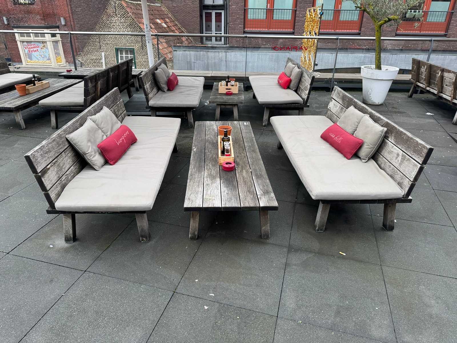 2 Banken met kussens en een tafel LET OP! Kavel bevindt zich op het dakterras. Nee Merk: Hutten