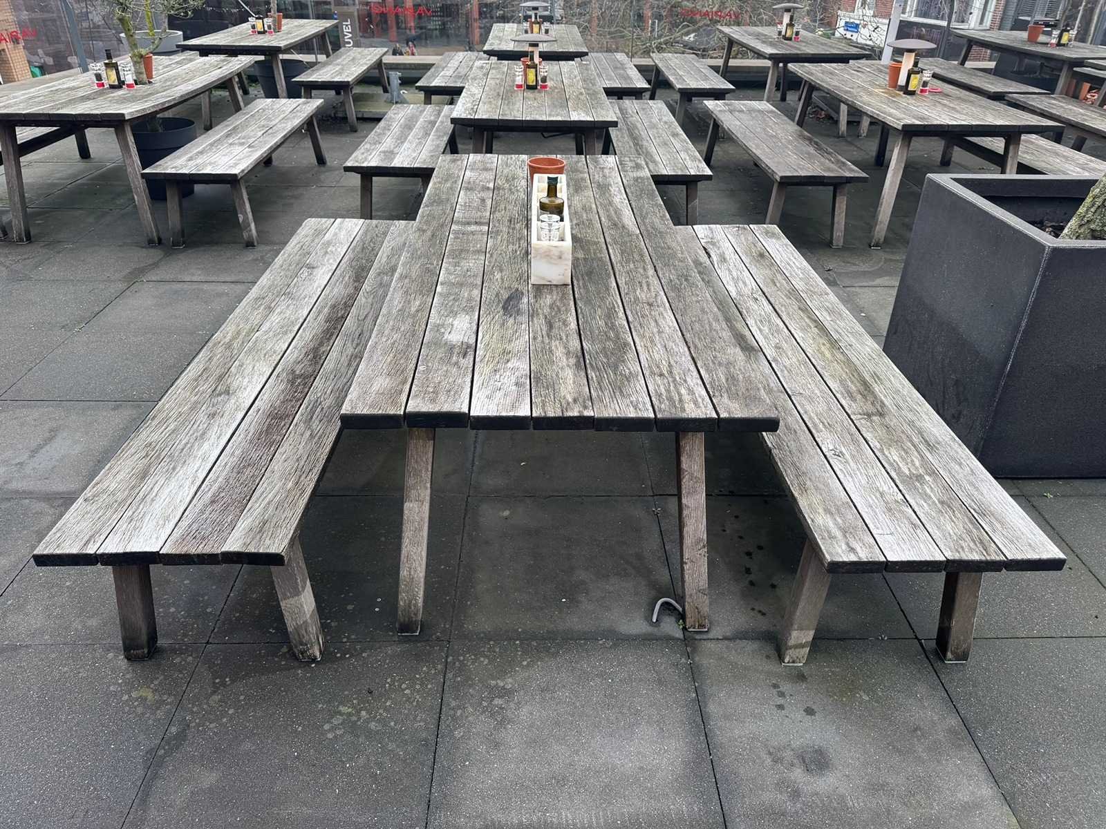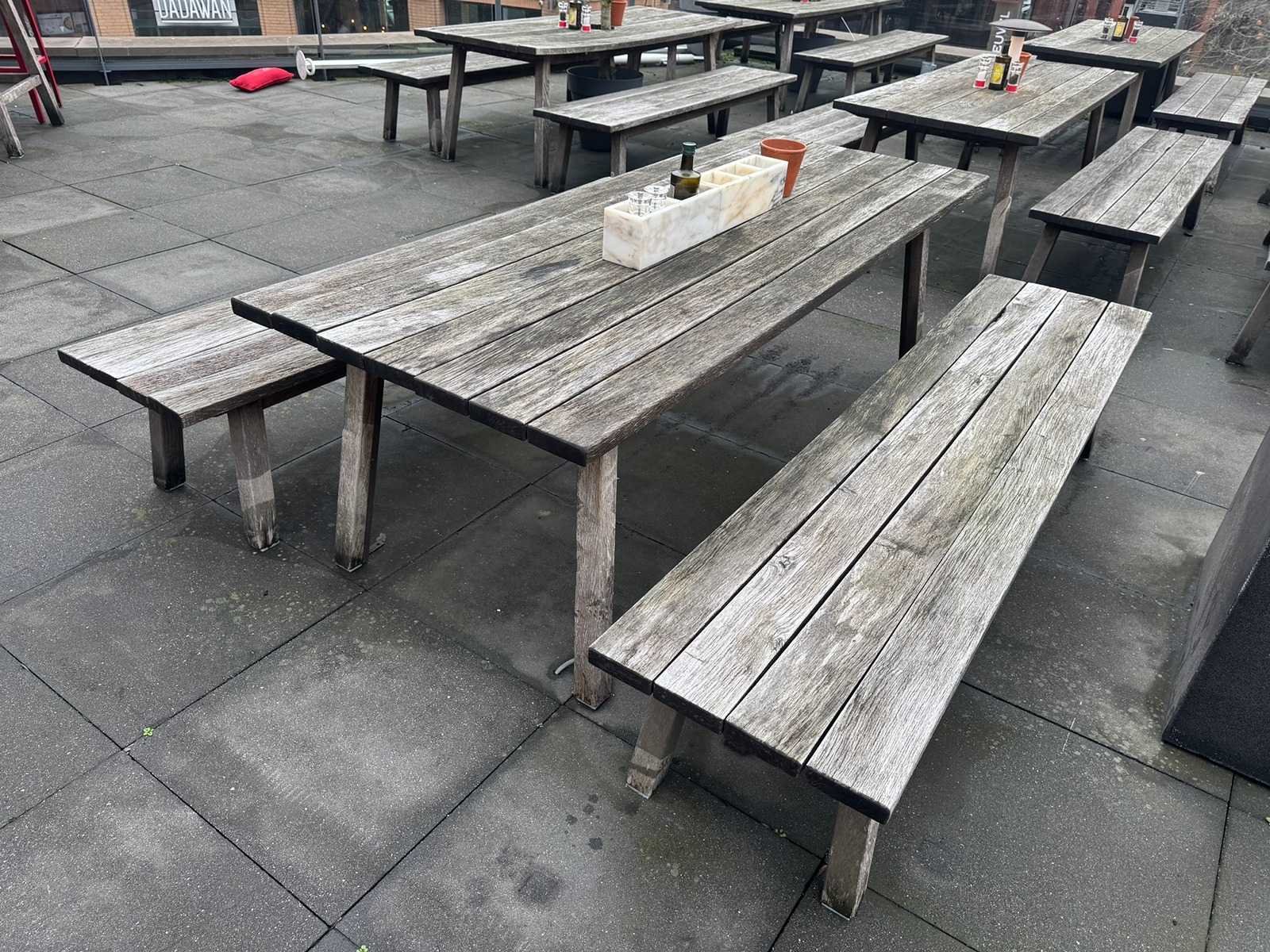 Hutten - houten terrasset tafel met 2 banken