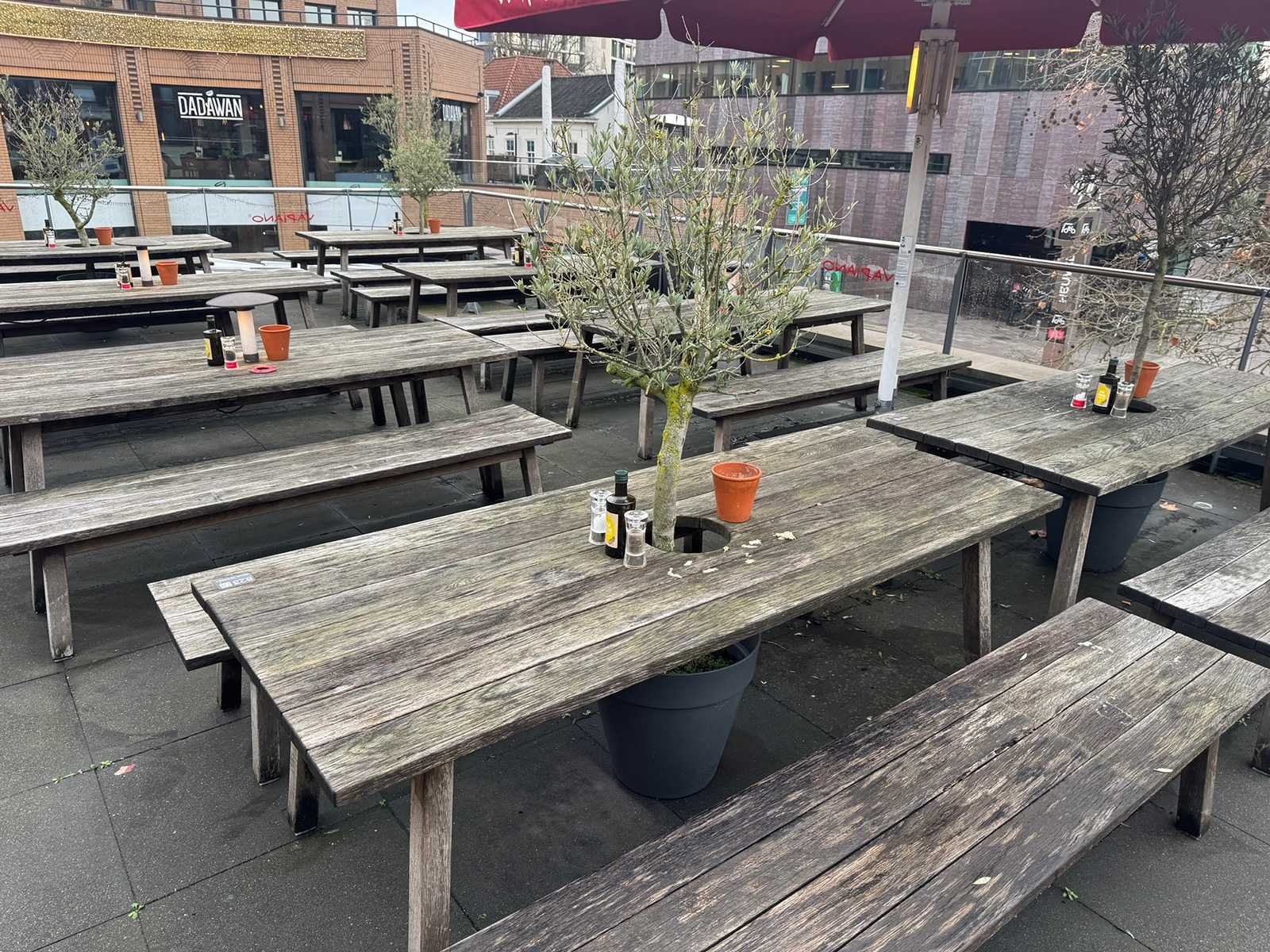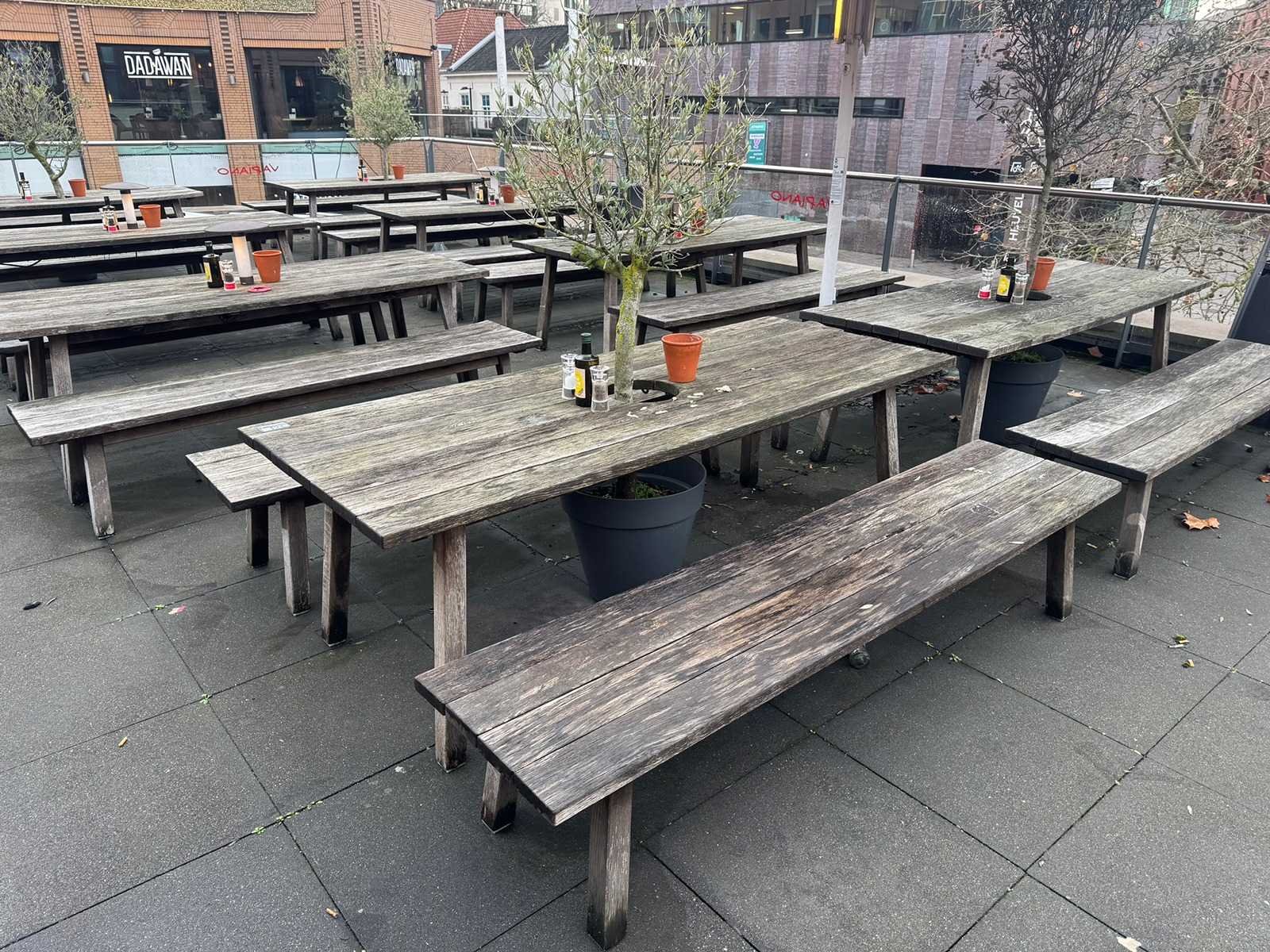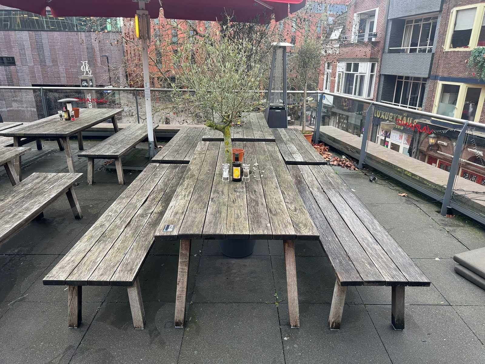 Hutten - houten terrasset tafel met 2 banken
