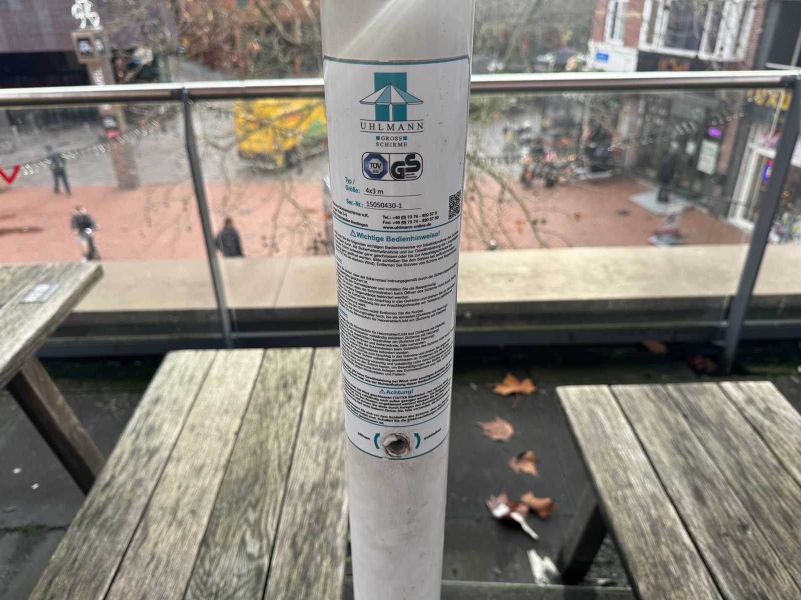 V.v. verlichting, inclusief voet met tegels. LET OP! Kavel bevindt zich op het dakterras. De koper is zelf verantwoordelijk voor het professioneel demonteren van de kavel. Kavel kan aangesloten zijn op het elektra-, water- en/of gasleidingnetwerk. Bekabeling en/of leidingen dienen netjes afgedopt en ordelijk achter gelaten te worden. Schade aan het pand of andere zaken zal op de koper worden verhaald. Wij adviseren u gebruik te maken van de kijkdag om een plan voor demontage op te stellen. Nee Merk: Uhlmann Model: Giant 4x3 Vorm: Rechhoekig Parasolvoet: true Lengte: 300cm Breedte: 300cm
