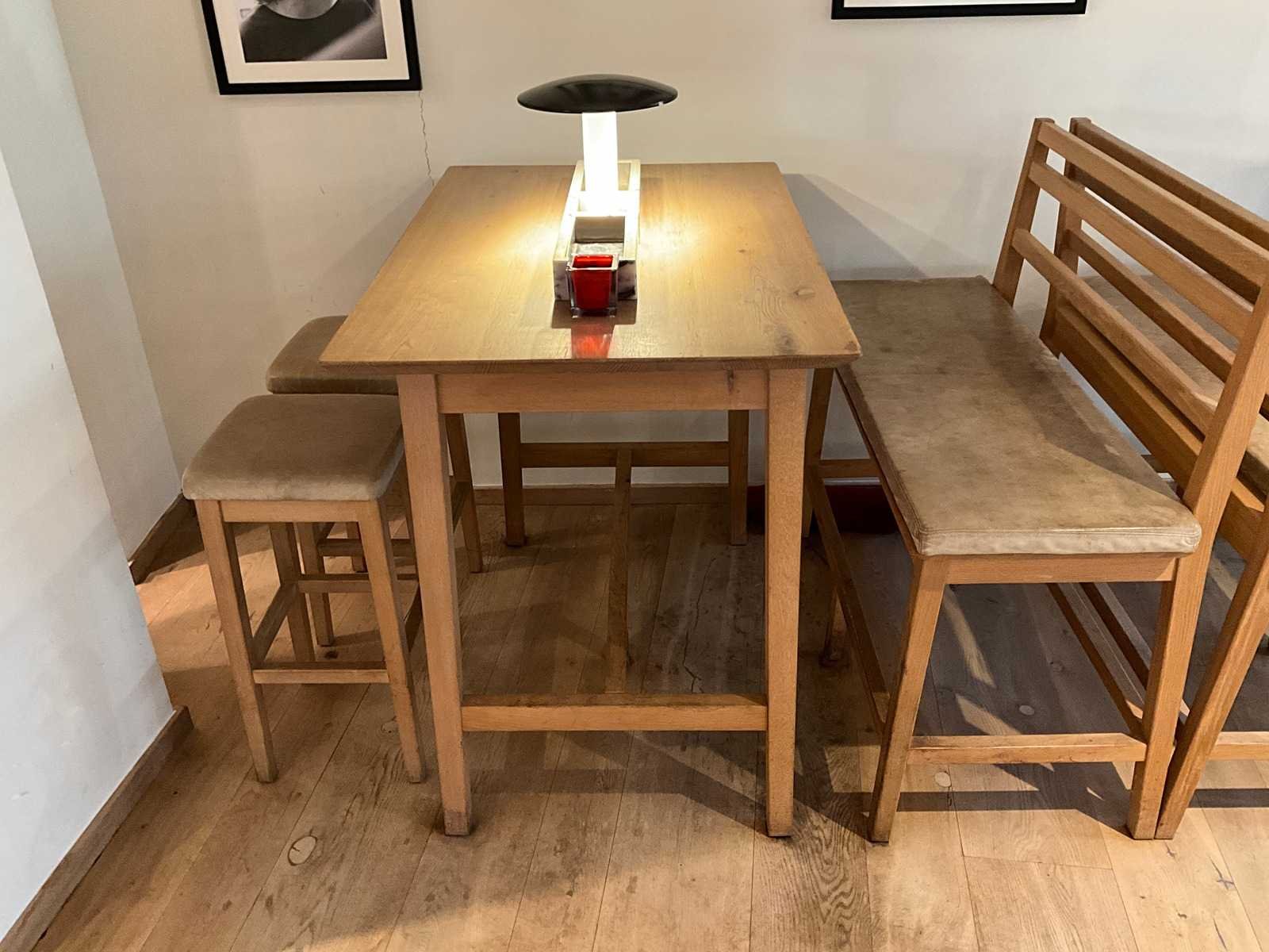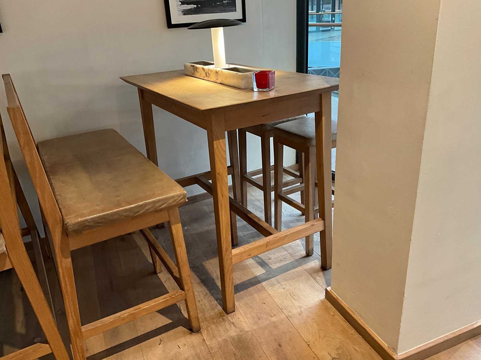 Bartafel met marmeren opbouw en verlichting. Afmeting bank: 125x50x112 cm, zithoogte 75 cm. Afmeting krukken 37x37x75 cm. De tafel is reeds ontkoppeld van de vloer en elektra. Hiervoor zijn de additionele kosten van toepassing. Nee Merk: Hutten Totale afmeting L: 1200mm Totale afmeting Breedte: 800mm Totale afmeting Hoogte: 1050mm Hout: true