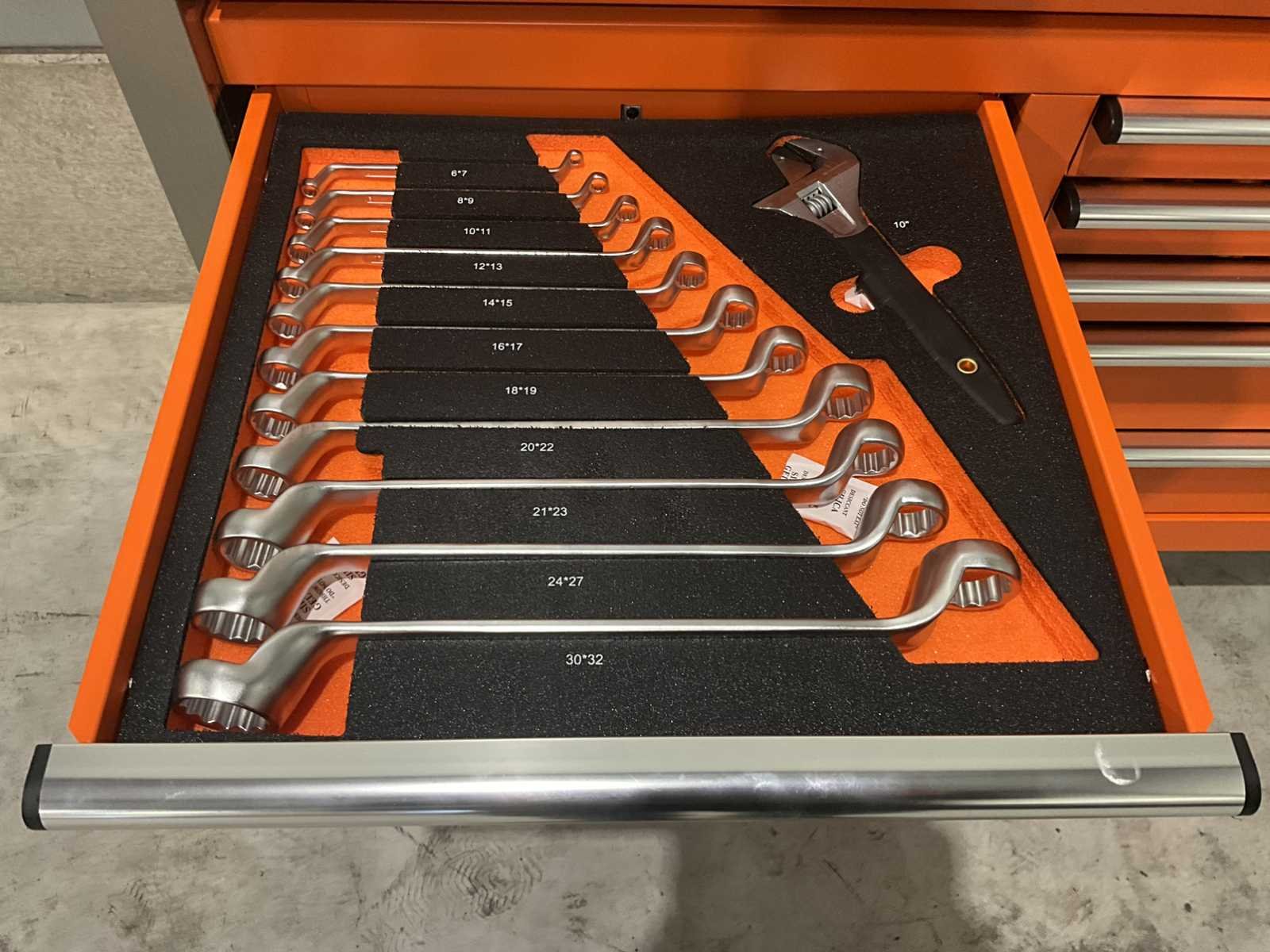 Ongebruikt 4 zwenkwielen rattelset en doppenset tot en met maat 50 386 st Heavy Duty gereedschapswagen gebruik: voor professionals aantal laden: 11 laden aantal gevulde laden: 9 gevulde laden gereedschap: chroom-vanadium gereedschap inhoud: 29-delige ring-steeksleutel set (6 mm - 50 mm) 3 ratelsleutel sets met doppen & bitsen (1/4”, 3/8” & 1/2”) 11-delige ring-ringsleutel set (6*7 mm - 30*32 mm) verstelbanre moersleutel 12-delige tangen set 2 hamers & 4 vijlen puntslag en beitel set 12 schroevendraaiers inbussleutels, Torxsleutels, precisiegereedschap 21-delige T-sleutelset 34-delige krachtdoppen set (12 mm - 50 mm) + Torx & inbus doppen & ratelsleutel 3/4,” LED-lamp, zaag, schaar, mes, meetgereedschappen enzovoort... in de originele verpakking Nee Merk: Daewoo Type: DAMW387 Bouwjaar: 2025 Aantal laden: 11 Met inhoud: true Eigen gewicht: 203kg Totale afmeting L: 1480mm Totale afmeting Breedte: 520mm Totale afmeting Hoogte: 1110mm
