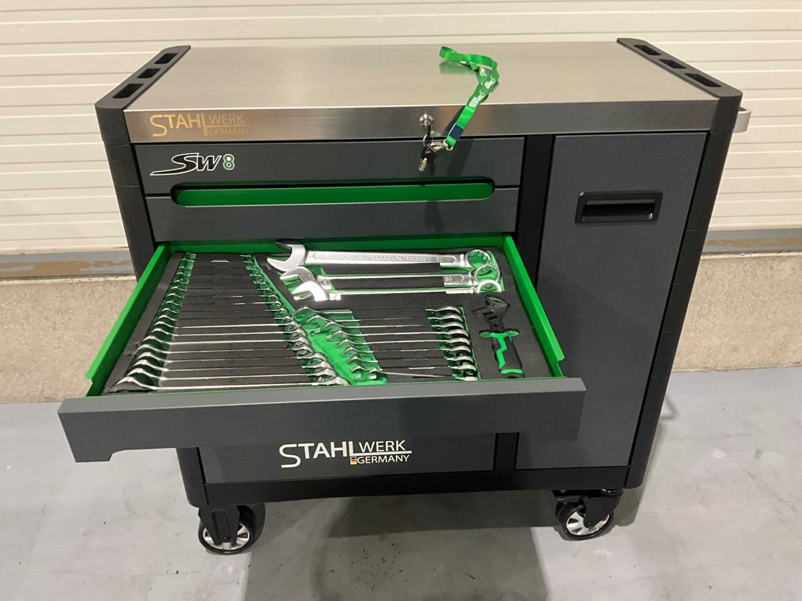 Ongebruikt , 3 stopcontacten , 2 usb poorten 13 stuks 1/4” doppen: 4-4,5-5-5,5-6-7-8-9-10-11-12-13-14mm 10 stuks 3/8” doppen: 13-14-15-16-17-18-19-20-21-22mm 14 stuks 1/2” doppen: 12-13-14-15-17-18-19-21-22-23-24-27-30-32mm 12 st. 1/2” dopsleutel: 12-13-14-15-16-17-18-19-21-22-24mm 3 stuks 1/4“ 3/8” 1/2” duwstang 3 stuks 1/4“ 3/8” 1/2” kruiskoppeling 2 st. 1/4“ maat 2” & 4” verlengstang 2 st. 3/8“ maat 3”&6” verlengstang 2 st. 1/2“ maat 5”&10” verlengstang 3 stuks 1/4“ 3/8” 1/2” ratelhandgreep 72T 1 st. 1/4“ snijhendel 1/2” Dr. koppeling 10 st. Bits PH3-4, PZ3-4, SL8, T40-45-50, H7-8; 12 st. 1/2” inbusbits maat: H14-17-19, M16, M9, MP9, M16, T80, M14, T40-45-50. 45 stuks 1/4” dopsleutels: SL4-SL5,5-... (en zo verder volgens uw lijst) 12 stuks 1/2” Pneumatische doppen: 10-11-12... (enzovoort) 9 stuks Lange inbussleutels: 1,5-2-2,5-... (enzovoort) 14 stuks schroevendraaiers: SL8*175-SL8*150-... (enzovoort) 7 stuks schroevendraaiers: SL6*38-SL5*100-... (enzovoort) 9 stuks. Flachringschlüssel:8-9-10-11-... (enzovoort) 21 stuks Kombischlüssel:6-7-8-9-10-11-... (enzovoort) 1 st. 8” verstelbare moersleutel 9 stuks schroevendraaiers: H2*100-5*150-... (enzovoort) 8 stuks T-Stecknuss:6-7-8-9-10-11-12-13mm 1 st. 8” combinatietang 1 stuk 8” naaldneuzen 1 x 8” zijkniptang 1 x 10” waterpomptang 1 x 10” vergrendeltang 1 stuk 7” binnenringtang recht 1 stuk 7” binnenringtang gebogen 1 x 7” buitenringtang recht 1 st. 7” buitenringtang gebogen 1 st. Meetlint 5 Nee Merk: Stahlwerk Type: SW 8 Bouwjaar: 2025 Aantal laden: 8 Met inhoud: true
