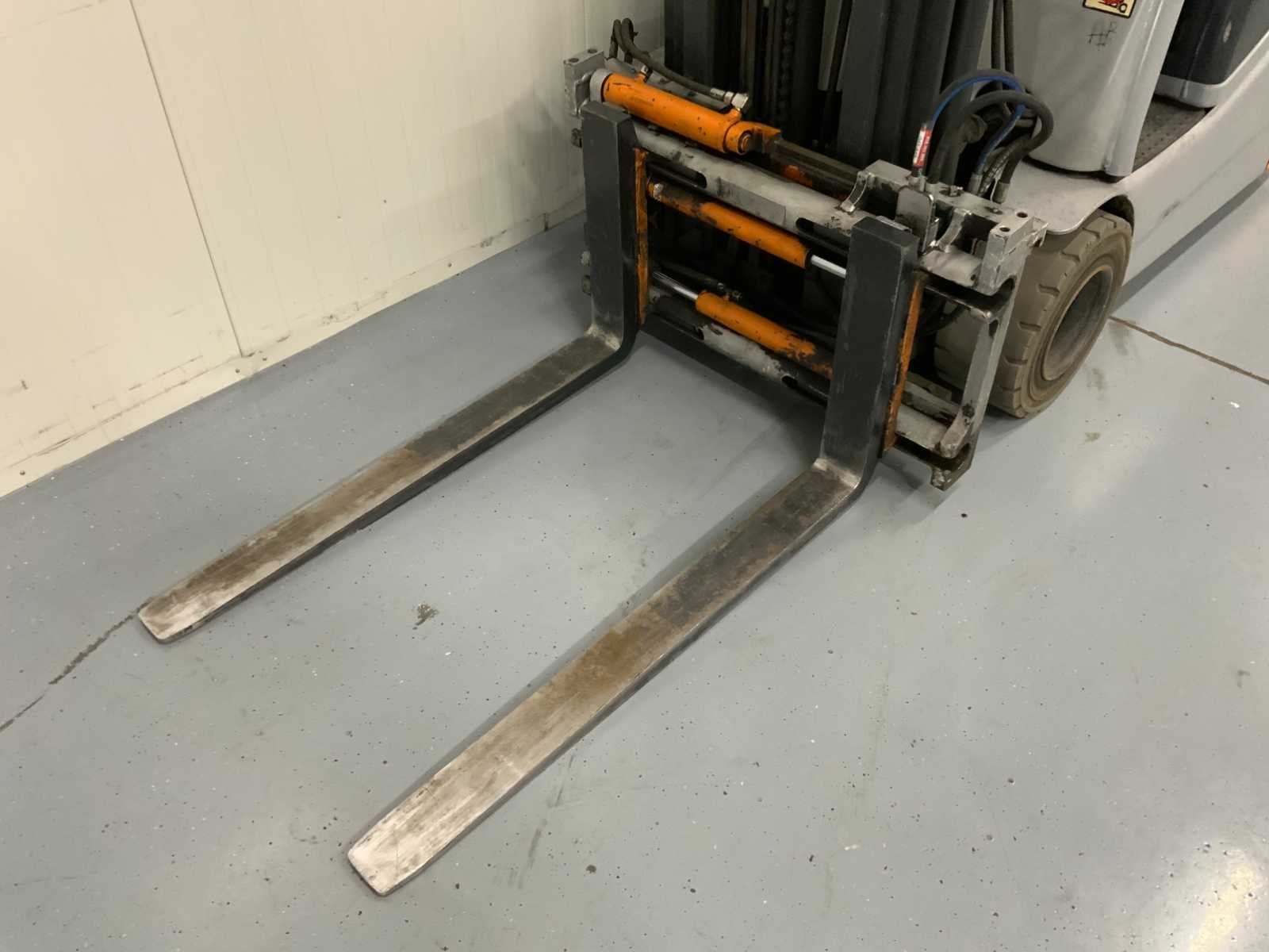Extra opties: Hydraulische vorkenversteller, Verlichting voor, Valbeugel beveiliging, Nee Merk: Still Type: RX20-20 Bouwjaar: 2012 Serienummer: 516215C00377 Brandstof: Elektrisch Mast: Triple Soort band: Volrubber banden Aantal wielen: 3 Free-lift: true Side-shift: true Hydraulisch verstelbare lepels: true Triple mast: true Eigen gewicht: 3489kg Hefvermogen: 2000kg Lepellengte: 1200mm Max. hefhoogte: 4765mm Hefhoogte: 4765mm Vol rubber banden: true Totale afmeting L: 3400mm Totale afmeting Breedte: 1150mm Totale afmeting Hoogte: 2200mm