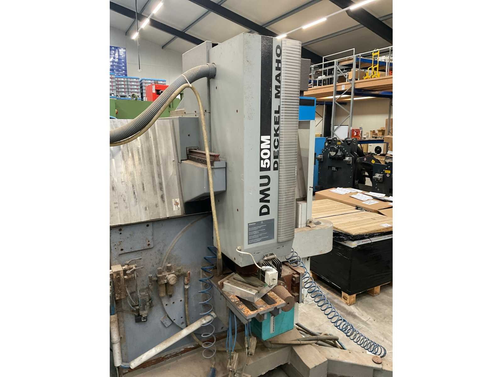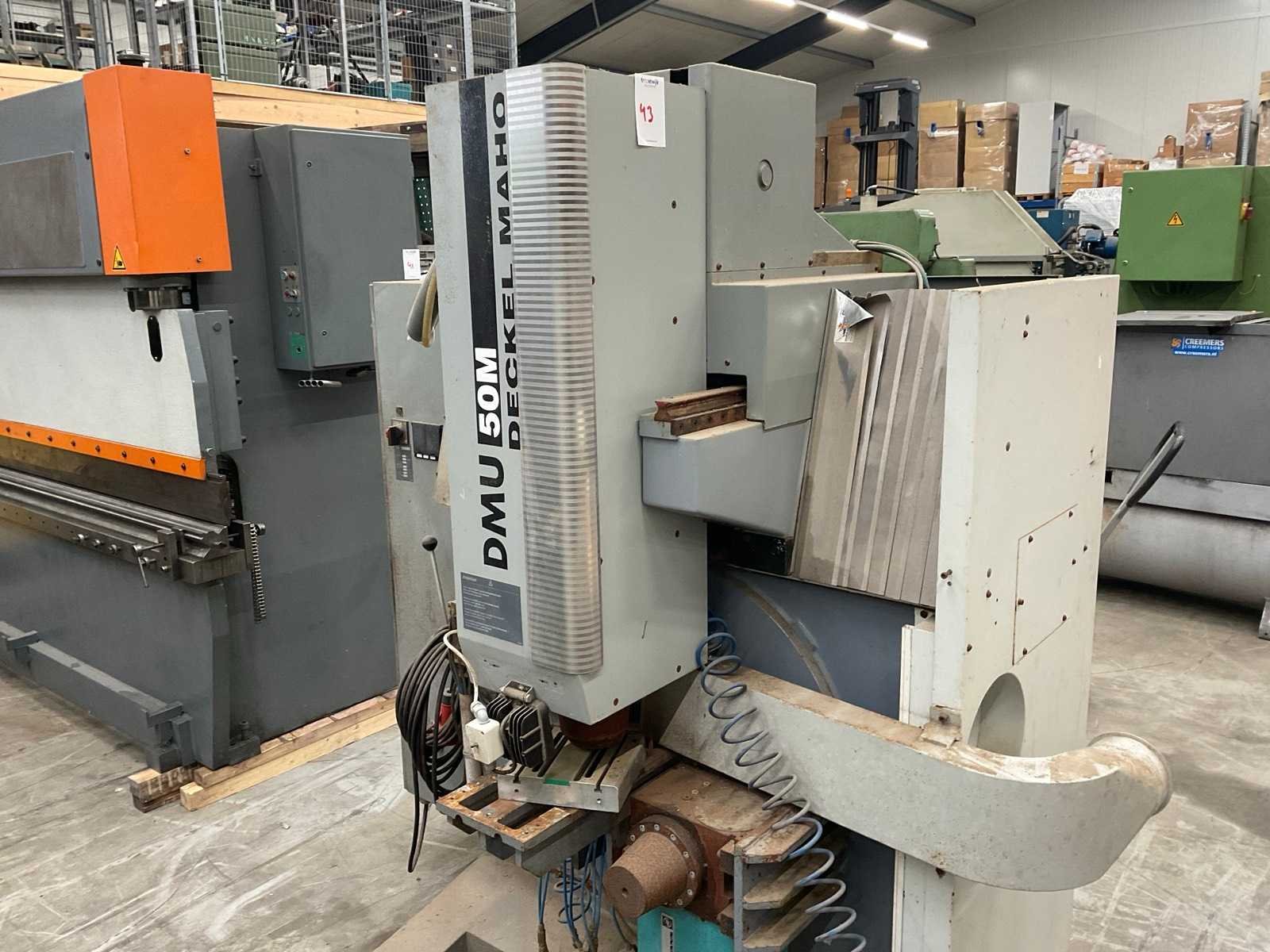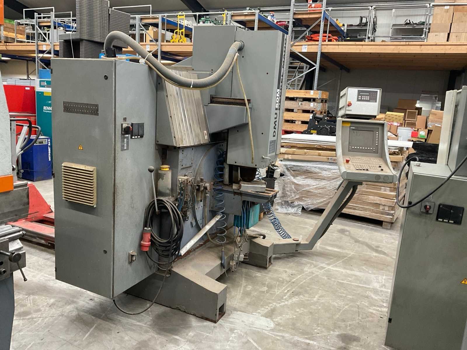 Voorzien van: Siemens besturingssystemen. No Merk: Deckel Maho Type: DMU 50M Bouwjaar: 2001 Serienummer: 11025529564 Verplaatsing x-as: 500mm Verplaatsing y-as: 400mm Verplaatsing z-as: 400mm CNC-besturing, merk, type: Siemens Aansluiting: 400V Afmeting l: 2500mm Afmeting b: 2100mm Afmeting h: 2120mm