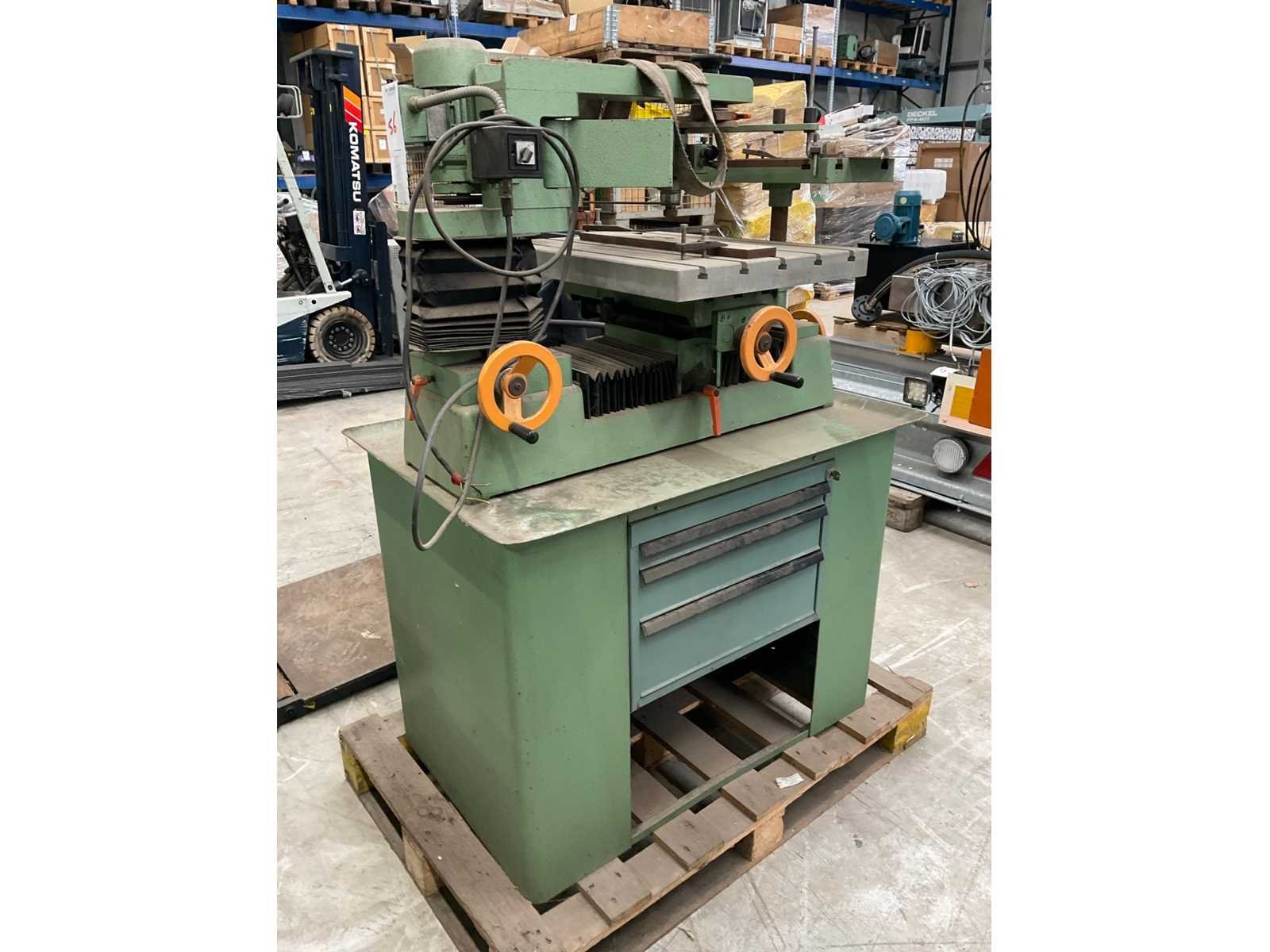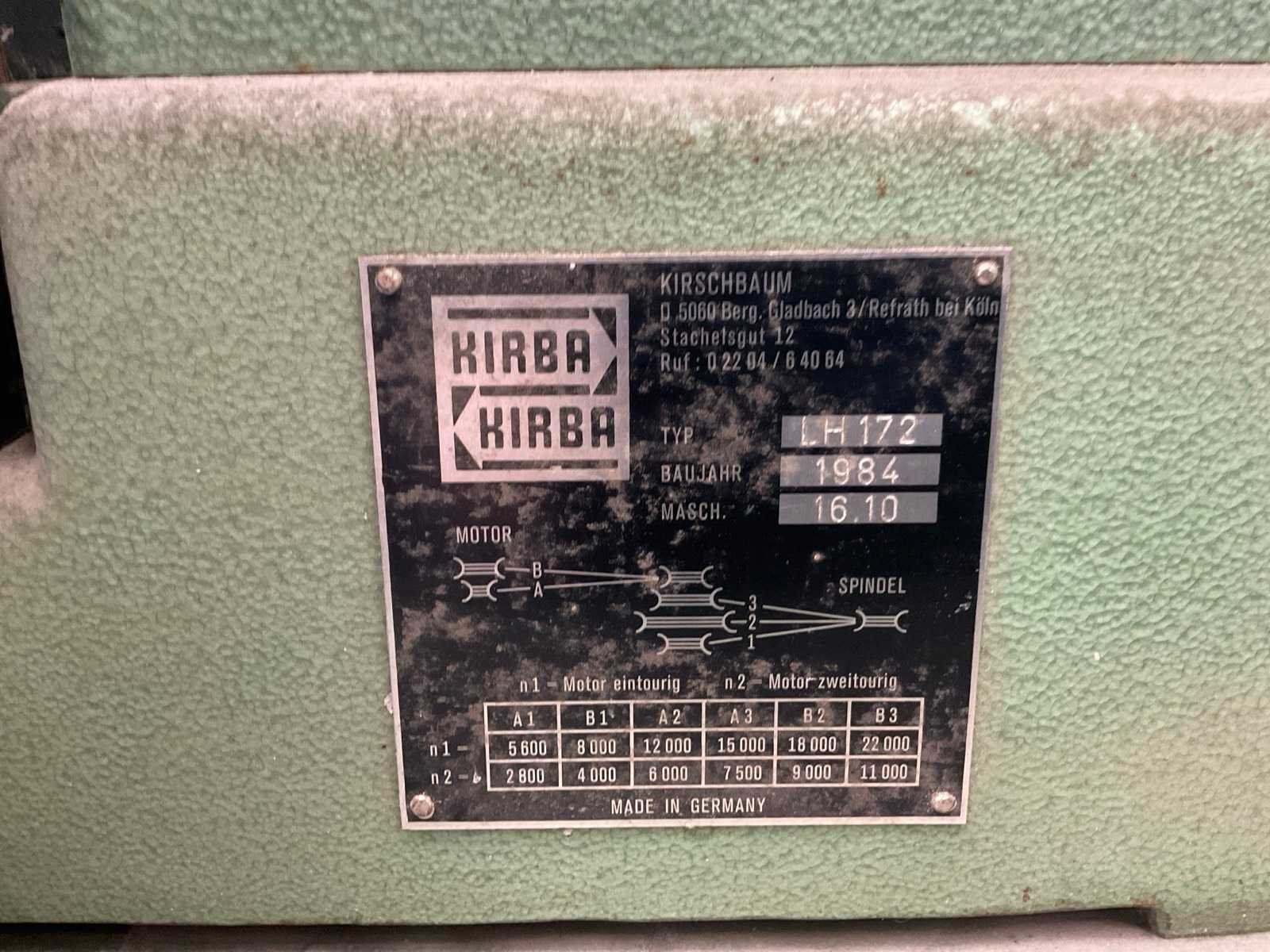 Hoogte verstelbaar: 420mm Nee Merk: Kirba Type: LH172 Bouwjaar: 1984 Serienummer: 1610 Verplaatsing x-as: 400mm Verplaatsing y-as: 200mm Snelheid van n =: 5600rpm Snelheid tot n =: 22000rpm T-gleuf opspantafelafmeting L: 600mm T-gleuf opspantafelafmeting B: 450mm Aansluiting: 400V Machinegewicht: 250kg Afmeting l: 1000mm Afmeting b: 700mm Afmeting h: 1390mm