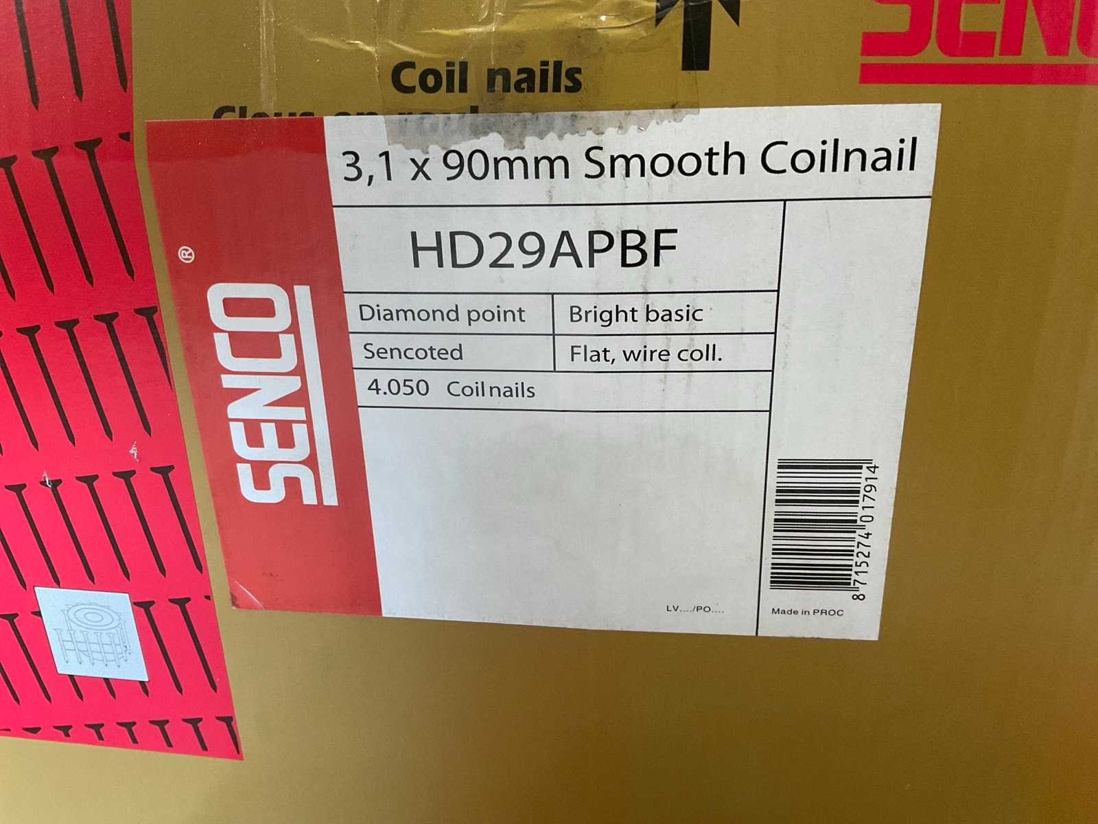 Diameter 3,1 x Lengte 90mm, platte kop. Per doos: 4050 stuks. Nee Merk: Senco Type: HD29APBF