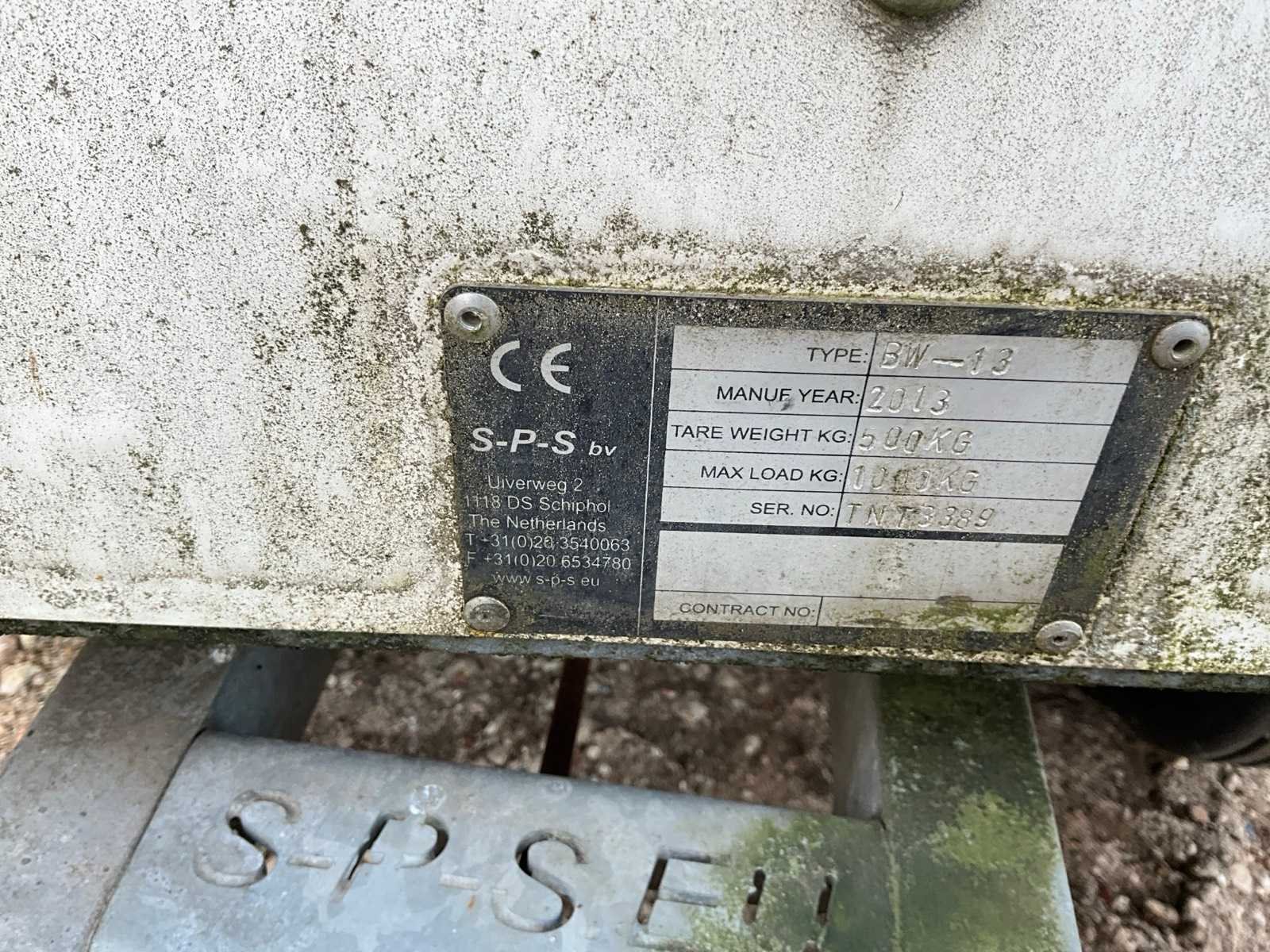 Nee Merk: SPS Type: BW-13 Laadvermogen: 1000kg Afmeting l: 226cm Afmeting b: 130cm Afmeting h: 125cm Eigen gewicht: 500kg Totale afmeting L: 3360mm Totale afmeting Breedte: 2260mm Totale afmeting Hoogte: 1700mm