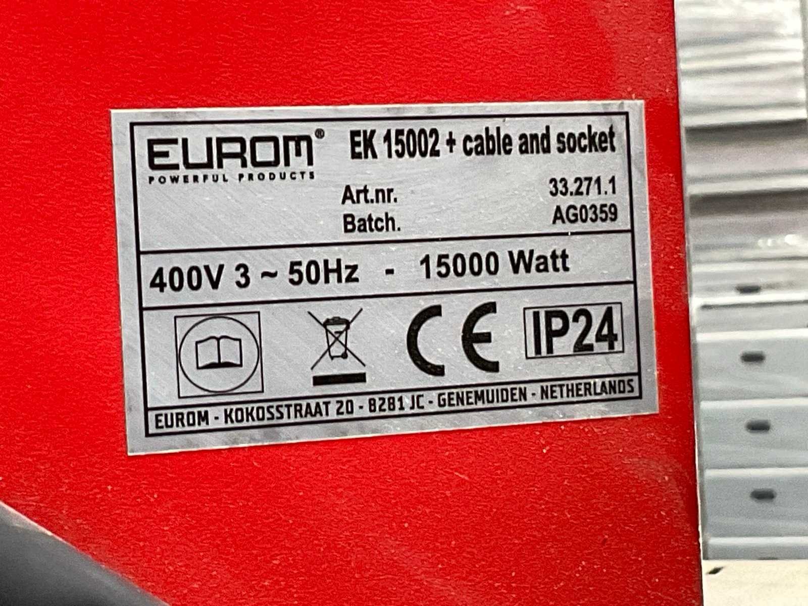 Nee Merk: Eurom Type: EK15002 Serienummer: AG0359 Vermogen: 15kW Totale afmeting L: 410mm Totale afmeting Breedte: 440mm Totale afmeting Hoogte: 560mm Aansluiting: 400V