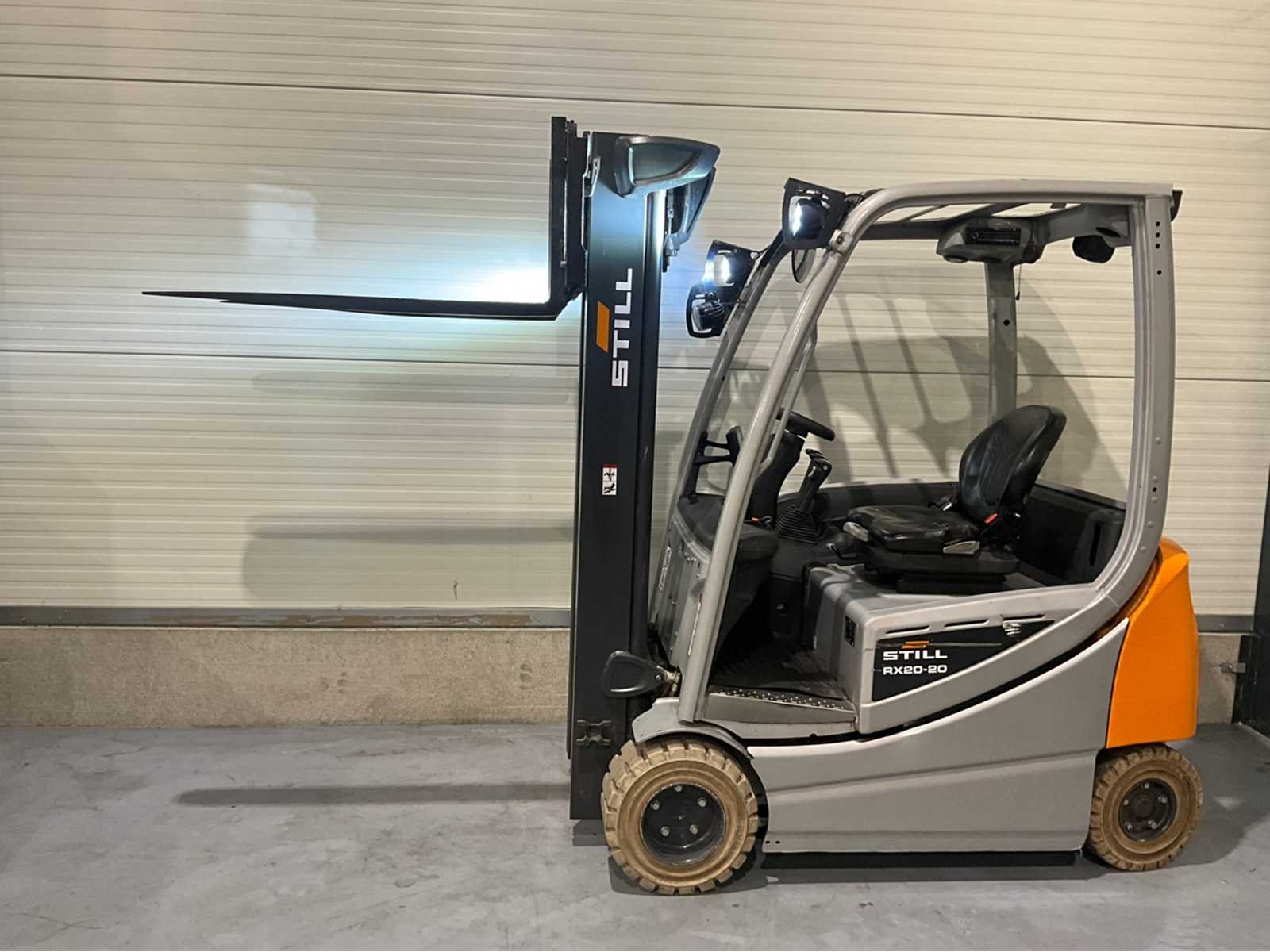 Extra opties : Led verlichting , Blue spot voor , Red spot achter , Non-marking banden , radio , Nee Merk: Still Type: RX20-20P Bouwjaar: 2020 Serienummer: 516230X00049 Mast: Triple Soort band: Volrubber banden Aantal wielen: 4 Free-lift: true Side-shift: true Triple mast: true Eigen gewicht: 3745kg Hefvermogen: 2000kg Hefhoogte: 4700mm Vol rubber banden: true Totale afmeting L: 3080mm Totale afmeting Breedte: 1110mm Totale afmeting Hoogte: 2170mm