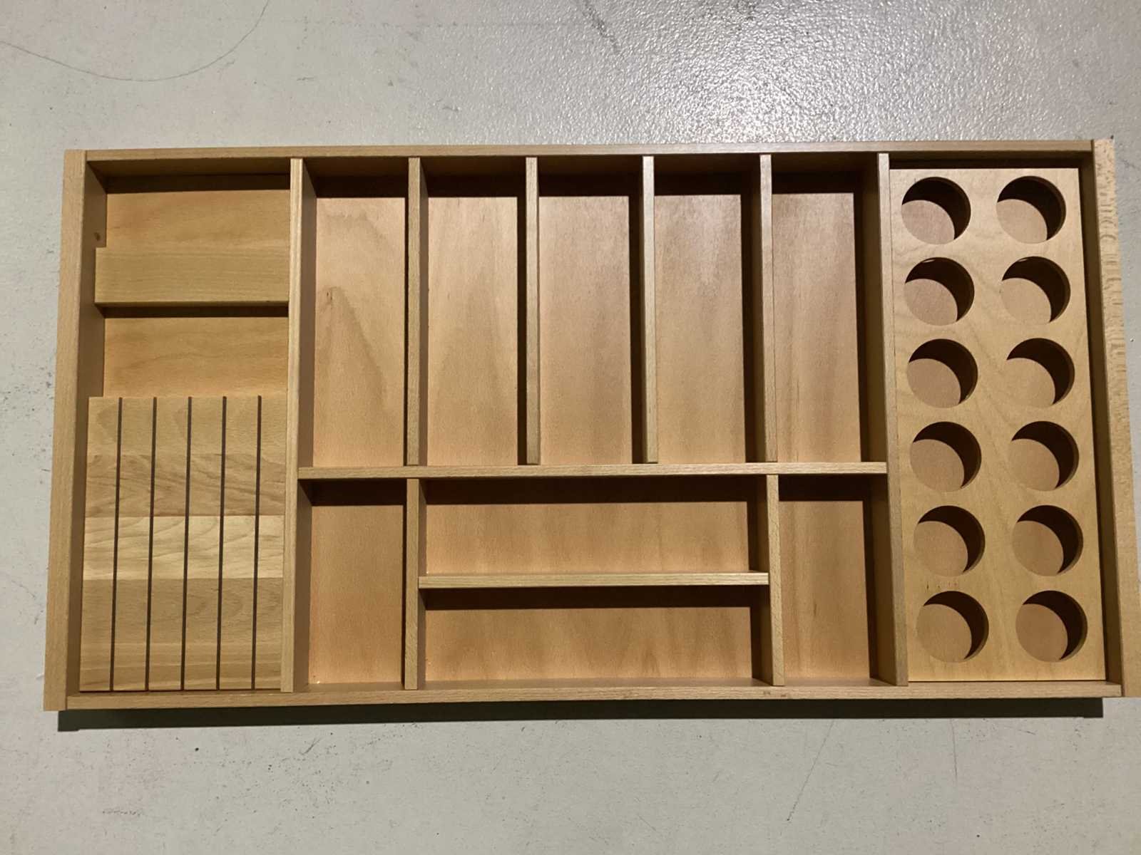 Showroommodel niet gebruikt. Geschikt voor een lade van 100cm Nee Merk: Nobilia Product type: Houten bestekbak Kleur: Houten Lengte: 90cm Breedte: 47cm