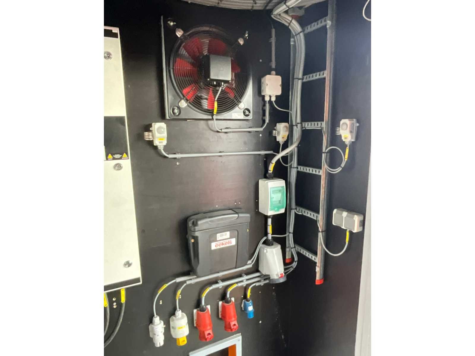 10 ft.-container uitgerust met een PLC-besturingssysteem voor het beheren van vier motoren van elk 45 kW, 3x reeks Powerlock aansluitingen 600 Volt; stroomaansluiting 400 en 230 Volt; verlichting; 1x toegangsdeur; 1x dubbele containerdeur; twistlocks; heftruck vorksleuven Nee Totale afmeting L: 2990mm Totale afmeting Breedte: 2440mm Totale afmeting Hoogte: 2590mm Eigen gewicht: 2000kg