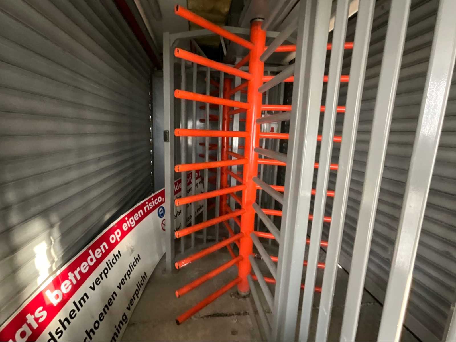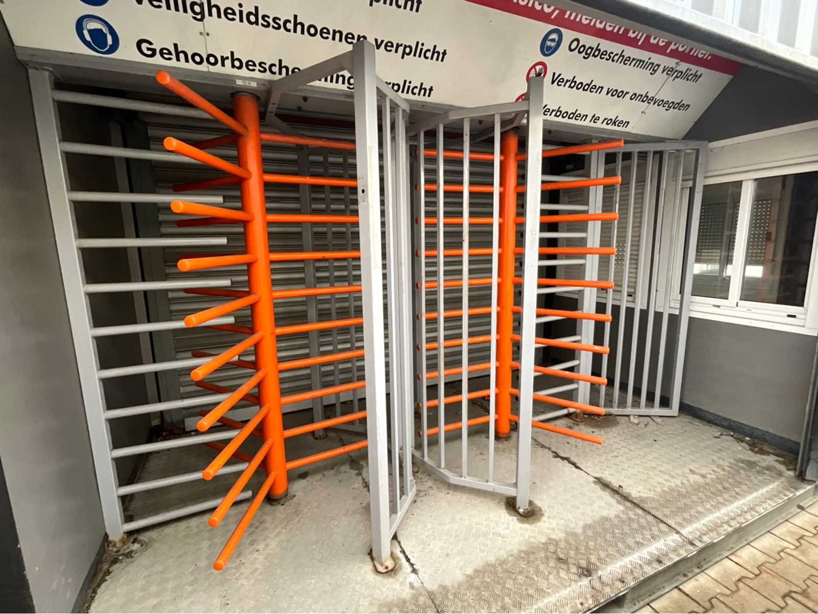 Gemonteerd in 20 ft. staal zeecontainer; 2 lange zijde deels voorzien van staal rolluiken; 2x Tourniquet draaideur; capaciteit 1200 personen / uur; met geïntegreerde portiersloge voorzien van 4 vensters met schuiframen / rolluik en een vast bureau; stroomaansluiting 230 Volt; twistlocks; heftruck vorksleuven; de koper dient zelf te zorgen voor transport en open vrachtauto met laadkraan; working condition not verified; Nee Merk: IQ Pass Type: Tourniquet XL Bouwjaar: 2011 Serienummer: CGXL.0005 Totale afmeting L: 2440mm Totale afmeting Breedte: 6000mm Totale afmeting Hoogte: 2900mm