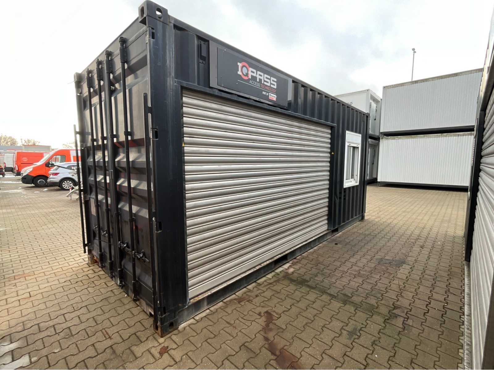 Gemonteerd in 20 ft. staal zeecontainer; 2 lange zijde deels voorzien van staal rolluiken; 2x Tourniquet draaideur; capaciteit 1200 personen / uur; met geïntegreerde portiersloge voorzien van 4 vensters met schuiframen / rolluik en een vast bureau; stroomaansluiting 230 Volt; twistlocks; heftruck vorksleuven; de koper dient zelf te zorgen voor transport en open vrachtauto met laadkraan; working condition not verified Nee Merk: IQ Pass Type: Tourniquet XL Totale afmeting L: 2440mm Totale afmeting Breedte: 6000mm Totale afmeting Hoogte: 2900mm