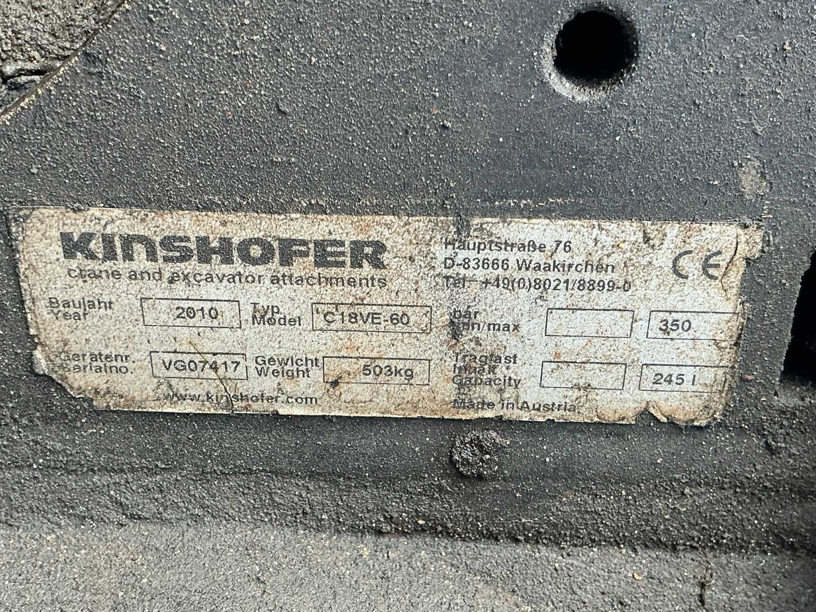 Rotator; snelkoppeling; hydraulische slangen voorzien van snelkoppelingen; working condition not verified; Nee Merk: Kinshofer Type: C18VE-60 Bouwjaar: 2010 Eigen gewicht: 503kg Totale afmeting L: 1600mm Totale afmeting Breedte: 600mm Totale afmeting Hoogte: 1400mm
