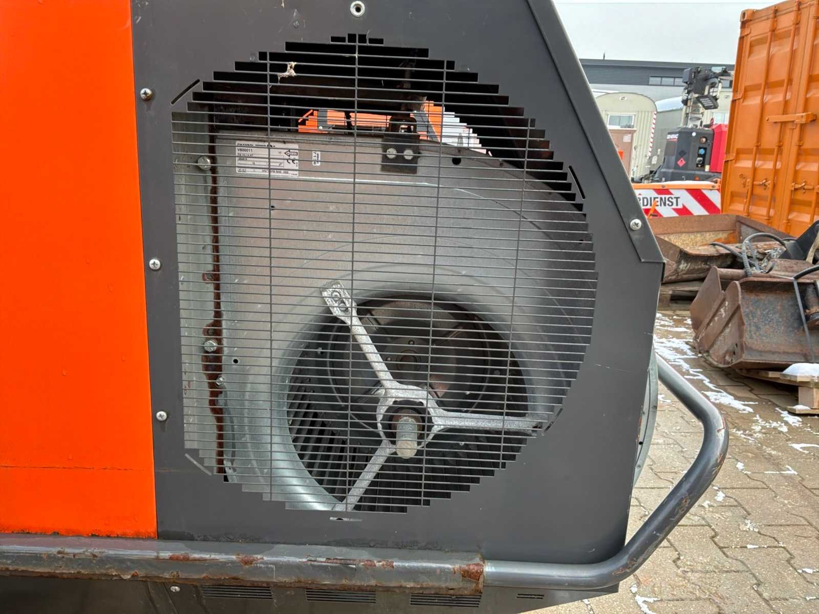 Verrijdbaar; indirect gestookt; diesel gestookt; externe brandstof aansluiting; volumestroom 11500 m3 / uur; 7,7 Ampère; luchtuitlaat diameter 600 mm; rookgasafvoer; hijsogen; heftruck vorksleuven; working condition Nee Merk: Thermobile Type: IMA-111 RHP Bouwjaar: 2019 Serienummer: 1804496 Vermogen: 110kW Ventilator: true Totale afmeting L: 2300mm Totale afmeting Breedte: 800mm Totale afmeting Hoogte: 1450mm Aansluiting: 400V