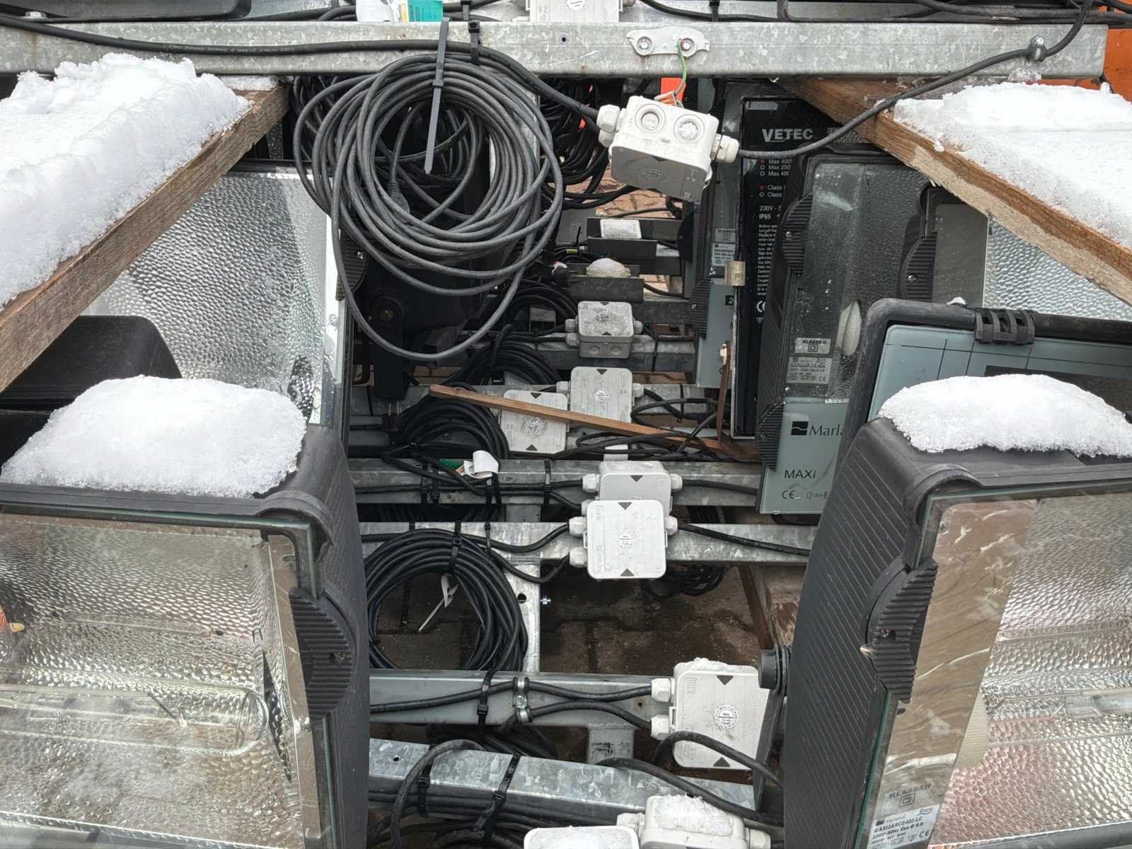 Diverse T beugels voorzien van dubbele bouwlamp; working not verified; inclusief staal transportframe; Nee Merk: Fenon / Vetec / Marlanvil / Euro / Primaelux Type: 400 Watt Halogeen: true Vermogen: 400W Aansluiting: 230V Totale afmeting L: 2600mm Totale afmeting Breedte: 1600mm Totale afmeting Hoogte: 1500mm