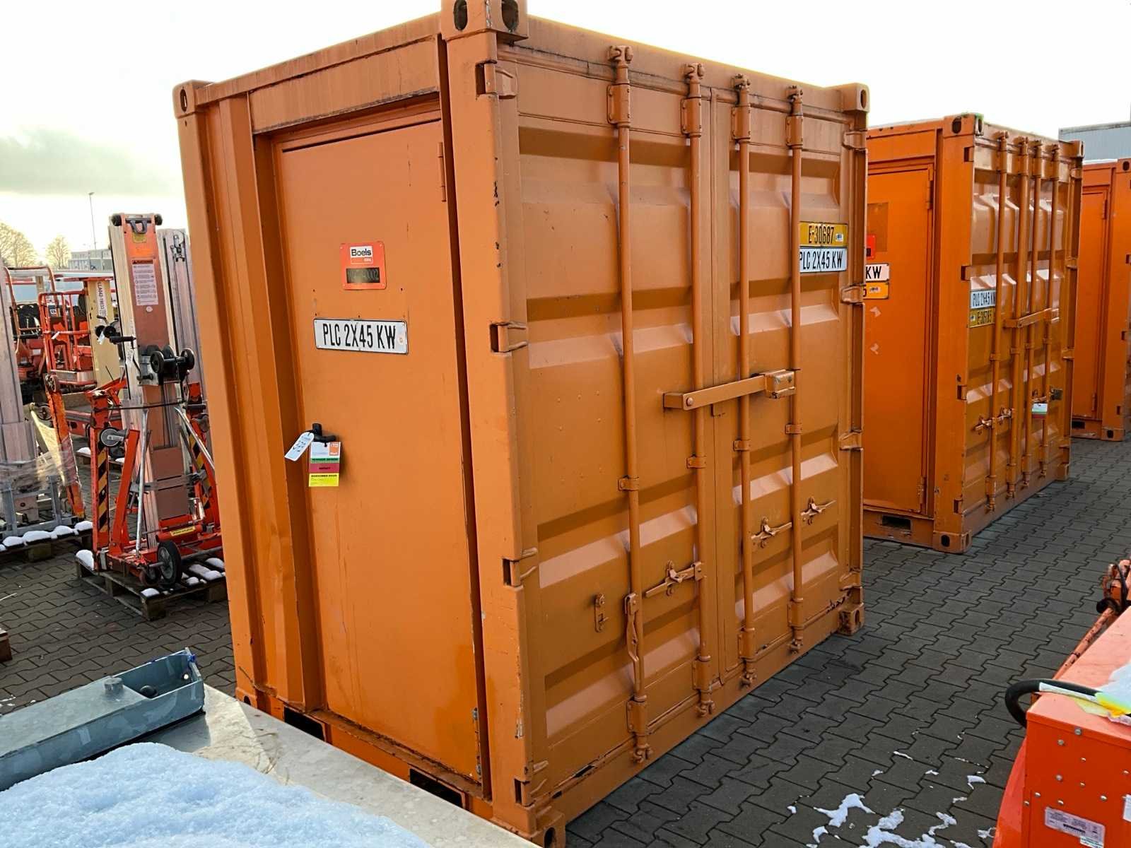 5 ft. container uitgerust met een PLC-besturingssysteem voor het beheren van vier motoren van elk 45 kW, stroomaansluiting 400 - 230 Volt; verlichting; 1x toegangsdeur; 1x dubbele containerdeur; twistlocks; heftruck vorksleuven; working condition not verified; Nee Bouwjaar: 2006 Totale afmeting L: 1750mm Totale afmeting Breedte: 2440mm Totale afmeting Hoogte: 2590mm Eigen gewicht: 1200kg