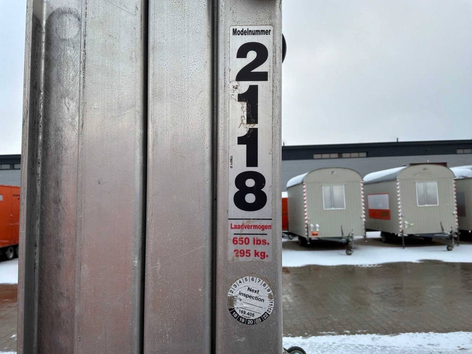 Handbediend: ja; max. hefhoogte: 5500 mm; max. hefcapaciteit: 295 kg; totale afmeting L: 860 mm; totale afmeting B: 800 mm; totale afmeting H: 2130 mm; eigen gewicht: 146 kg; omschrijving: handbediend; verrijdbaar; gegalvaniseerd staal; staalkabellier; opklapbaar onderstel; staalkabellier; toepassing: onderhoudswerkzaamheden / montage werkzaamheden / installatie werkzaamheden; incompleet; working condition not verified; Nee Merk: Sumner Manufacturing Type: 2118 Bouwjaar: 2016