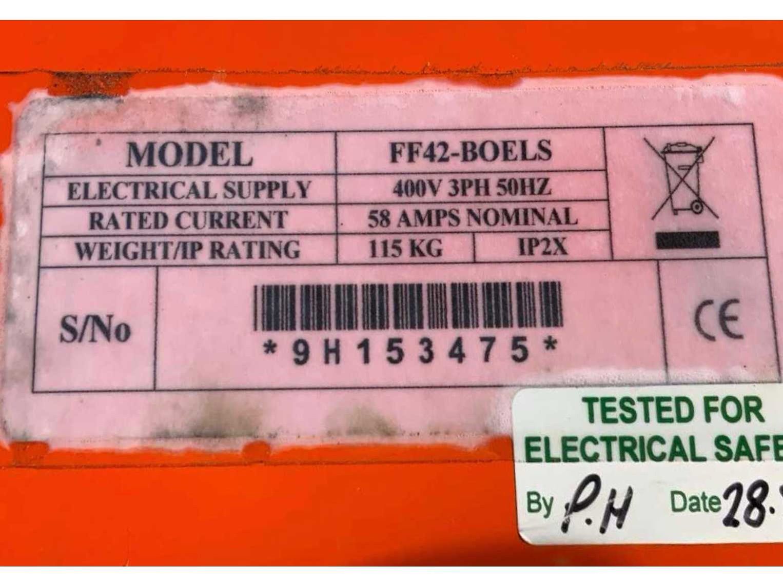 Voorzien van wielen en heftruck sleuven; 500 mm diameter aansluiting; luchtdebiet 4000 m3 / uur; 63 Ampère; bedieningspaneel; hijsogen; working condition not verified; Nee Type: FF42-Boels Vermogen: 42kW Eigen gewicht: 340kg Totale afmeting L: 1330mm Totale afmeting Breedte: 570mm Totale afmeting Hoogte: 920mm Aansluiting: 400V