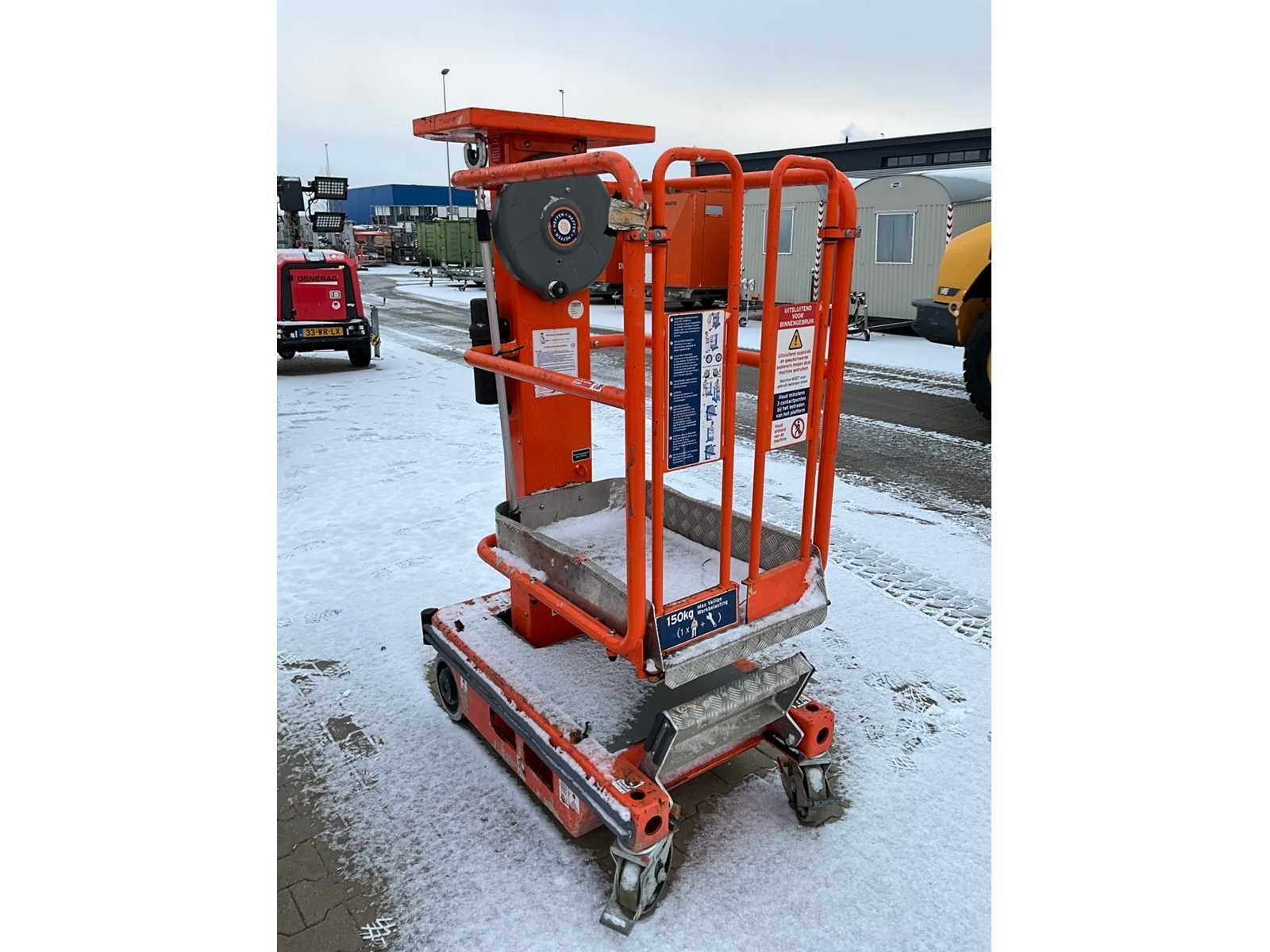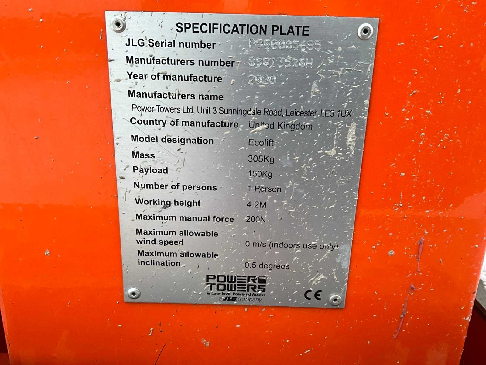 Gebruik: binnen; platform vloerhoogte 2200 mm; handbediend verticaal liftmechanisme; working condition; Nee Merk: JLG Power Towers Type: Ecolift Bouwjaar: 2020 Masthoogwerker: true Werkhoogte: 4200mm Plateau afm. l: 850mm Plateau afm. b: 640mm Platform capaciteit: 150kg Eigen gewicht: 305kg Totale afmeting L: 1300mm Totale afmeting Breedte: 700mm Totale afmeting Hoogte: 1950mm