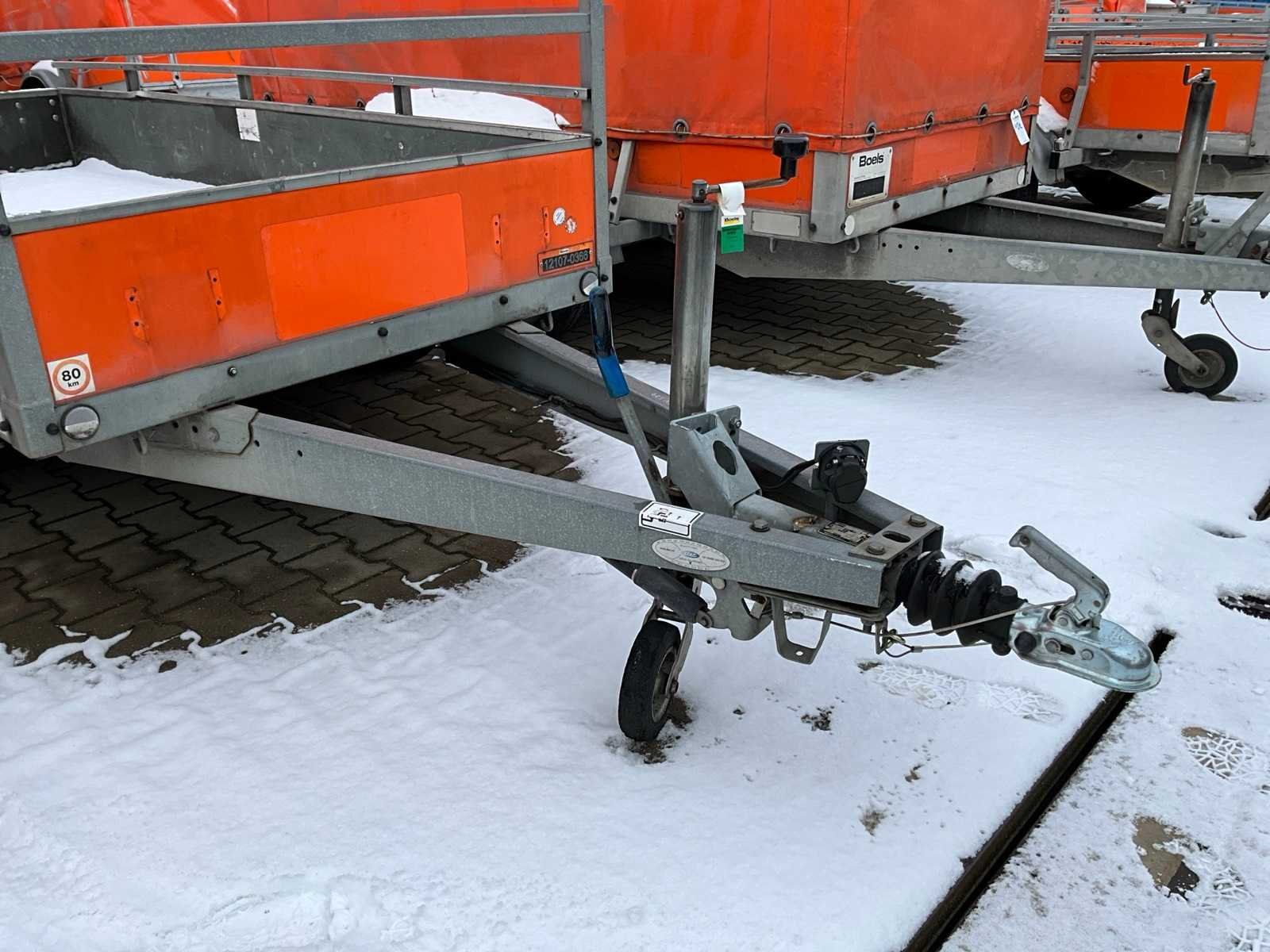 Lengte 4650 mm; breedte 1800 mm; hoogte 1650 mm; gegalvaniseerd staal frame; hout schotten; koprek; neuswiel; geremd; (de koper dient bij transport over de weg zelf te voorzien in een geldig kenteken; een 7 of 9 polige aansluitstekker of verloopstuk met kabel (verlengsnoer kan ter plaatse tegen betaling aangekocht worden); eventueel extra lichtbalk; Duitse kentekenpapieren; gelijkvormigheidsattest; (VIE-EY524) Nee Merk: Atec Type: EB2 2-1 Bouwjaar: 2015 Chassisnummer: XPPBW200V15002092 Aantal assen: 2 Laadbak afmeting l: 305cm Laadbak afmeting b: 135cm Ledig gewicht: 460kg Laadvermogen: 1540kg