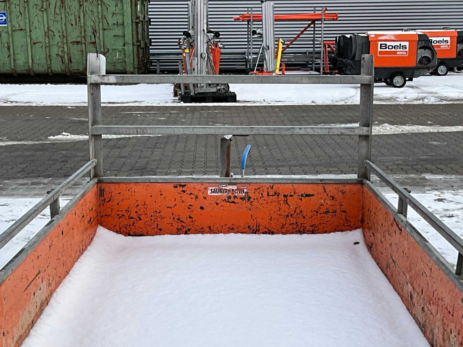 Lengte 4650 mm; breedte 1800 mm; hoogte 1650 mm; gegalvaniseerd staal frame; hout schotten; koprek; neuswiel; geremd; (de koper dient bij transport over de weg zelf te voorzien in een geldig kenteken; een 7 of 9 polige aansluitstekker of verloopstuk met kabel (verlengsnoer kan ter plaatse tegen betaling aangekocht worden); eventueel extra lichtbalk; Duitse kentekenpapieren; zonder gelijkvormigheidsattest; (B-BK8320) Nee Merk: Atec Type: EB2 2-1 Bouwjaar: 2012 Chassisnummer: XMKB53013R2C38775 Aantal assen: 2 Laadbak afmeting l: 305cm Laadbak afmeting b: 135cm Ledig gewicht: 460kg Laadvermogen: 1540kg
