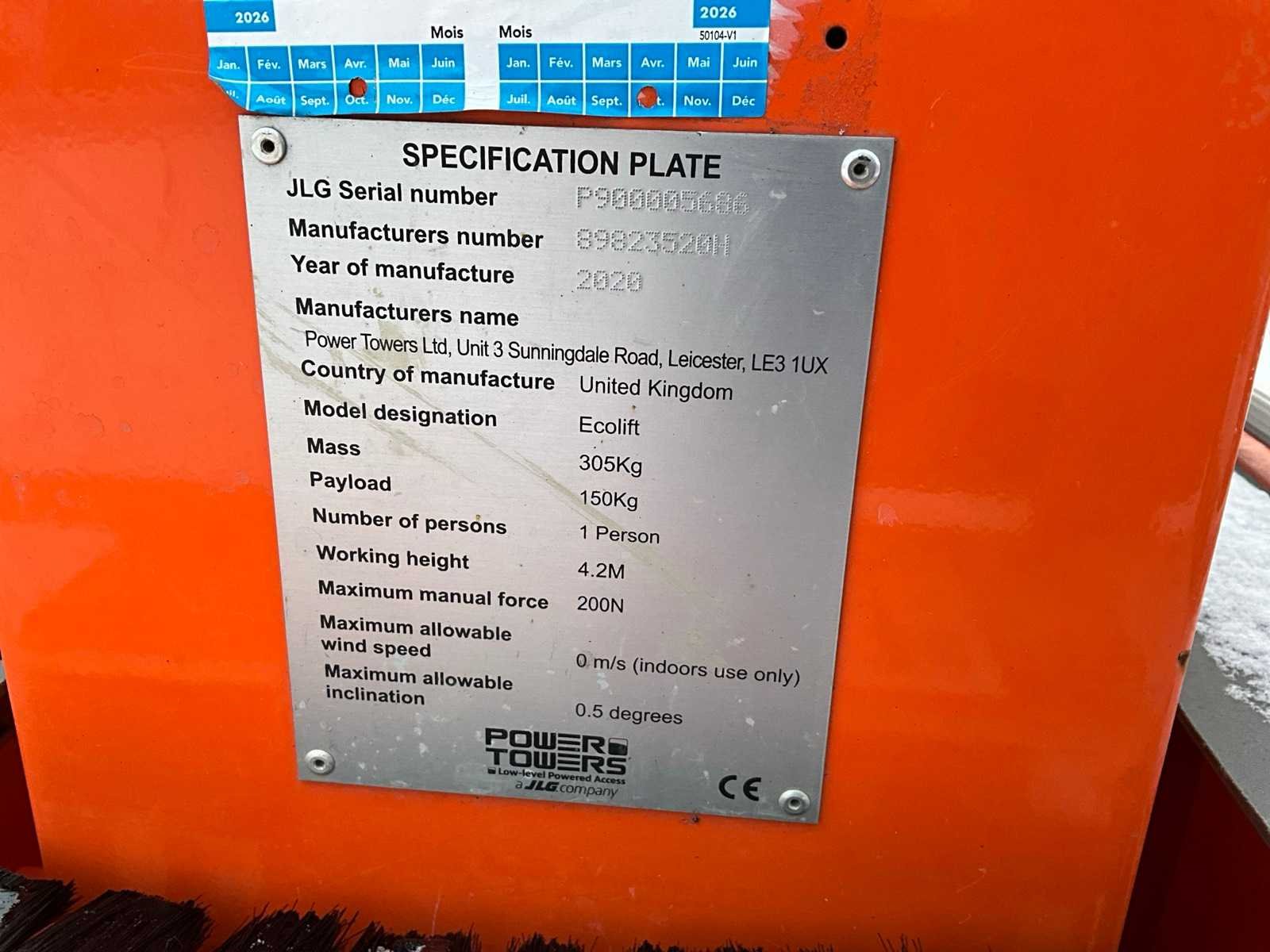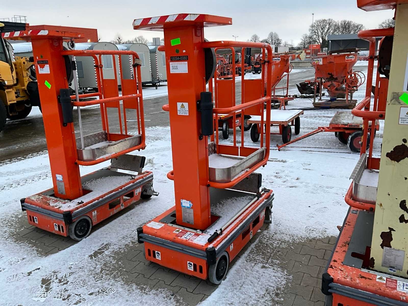 Gebruik: binnen; platform vloerhoogte 2200 mm; handbediend verticaal liftmechanisme; working condition; Nee Merk: JLG Power Towers Type: Ecolift Bouwjaar: 2020 Masthoogwerker: true Werkhoogte: 4200mm Plateau afm. l: 850mm Plateau afm. b: 640mm Platform capaciteit: 150kg Eigen gewicht: 305kg Totale afmeting L: 1300mm Totale afmeting Breedte: 700mm Totale afmeting Hoogte: 1950mm