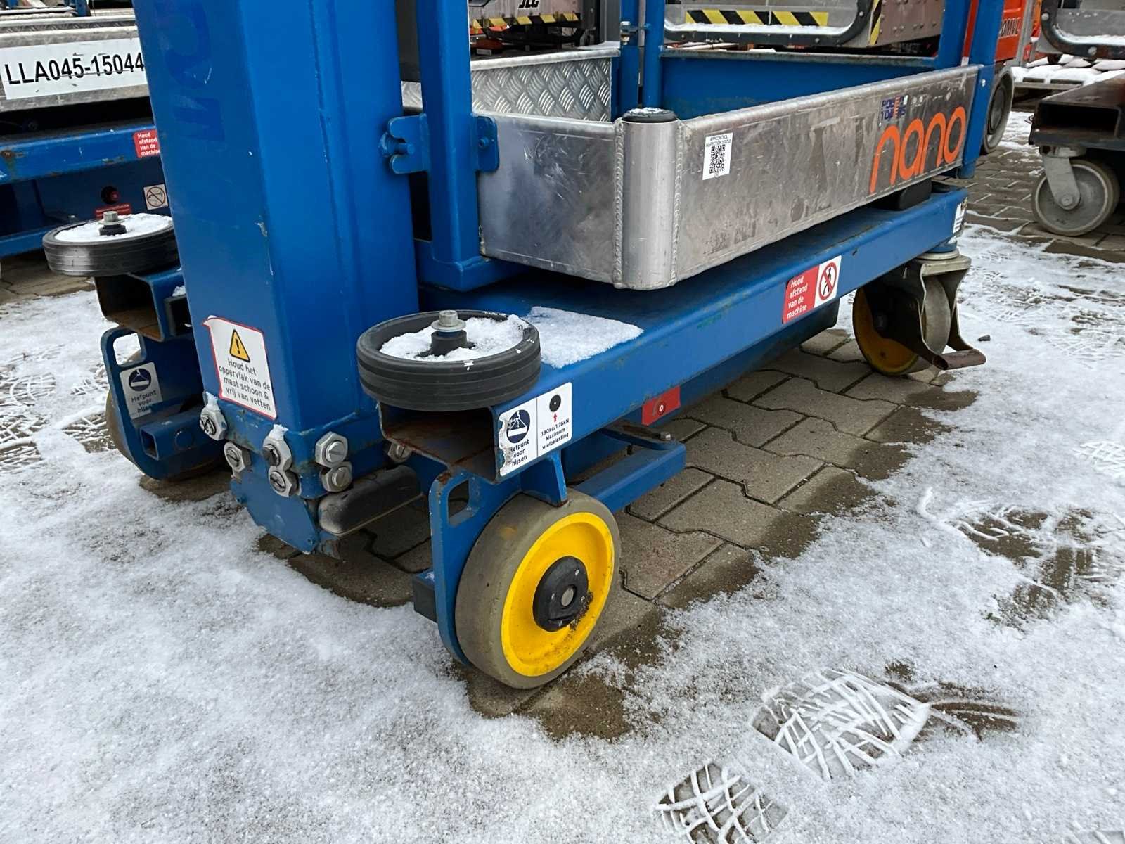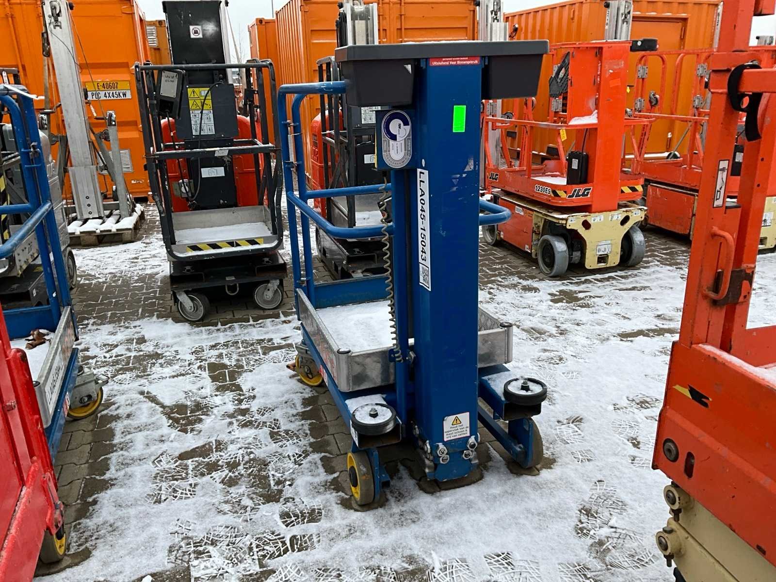 Gebruik: binnen; platform vloerhoogte 2500 mm; elektrisch verticaal liftmechanisme; accu 12 Volt DC; kooibediening; uitschuifbaar platform afmeting 1500x730 mm; handbediend verrijdbaar; voorzien heftruck vorksleuven; working condition, accu leeg Nee Merk: JLG Power Tower Type: Nano Elektrisch: true Masthoogwerker: true Werkhoogte: 4500mm Plateau afm. l: 900mm Plateau afm. b: 670mm Platform capaciteit: 200kg Eigen gewicht: 285kg Totale afmeting L: 1250mm Totale afmeting Breedte: 750mm Totale afmeting Hoogte: 1600mm