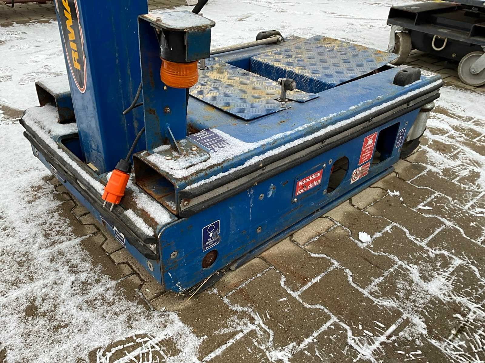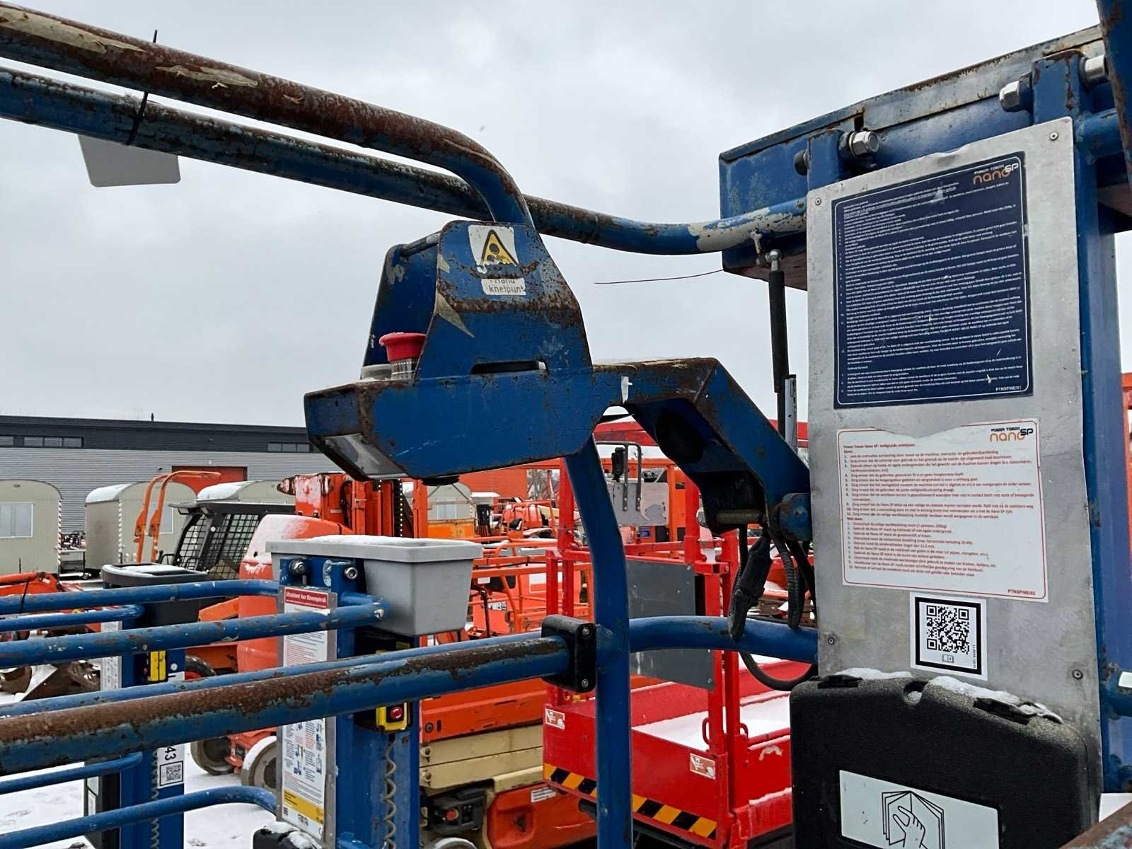 Gebruik: binnen; platform vloerhoogte 2500 mm; elektrisch verticaal liftmechanisme; accu 12 Volt DC; kooibediening; uitschuifbaar platform afmeting 1500x730 mm; handbediend verrijdbaar; voorzien heftruck vorksleuven; working condition Nee Merk: JLG Power Tower Type: Nano Bouwjaar: 2012 Serienummer: 107928120 Elektrisch: true Masthoogwerker: true Werkhoogte: 4500mm Plateau afm. l: 900mm Plateau afm. b: 670mm Platform capaciteit: 200kg Eigen gewicht: 285kg Totale afmeting L: 1250mm Totale afmeting Breedte: 750mm Totale afmeting Hoogte: 1600mm