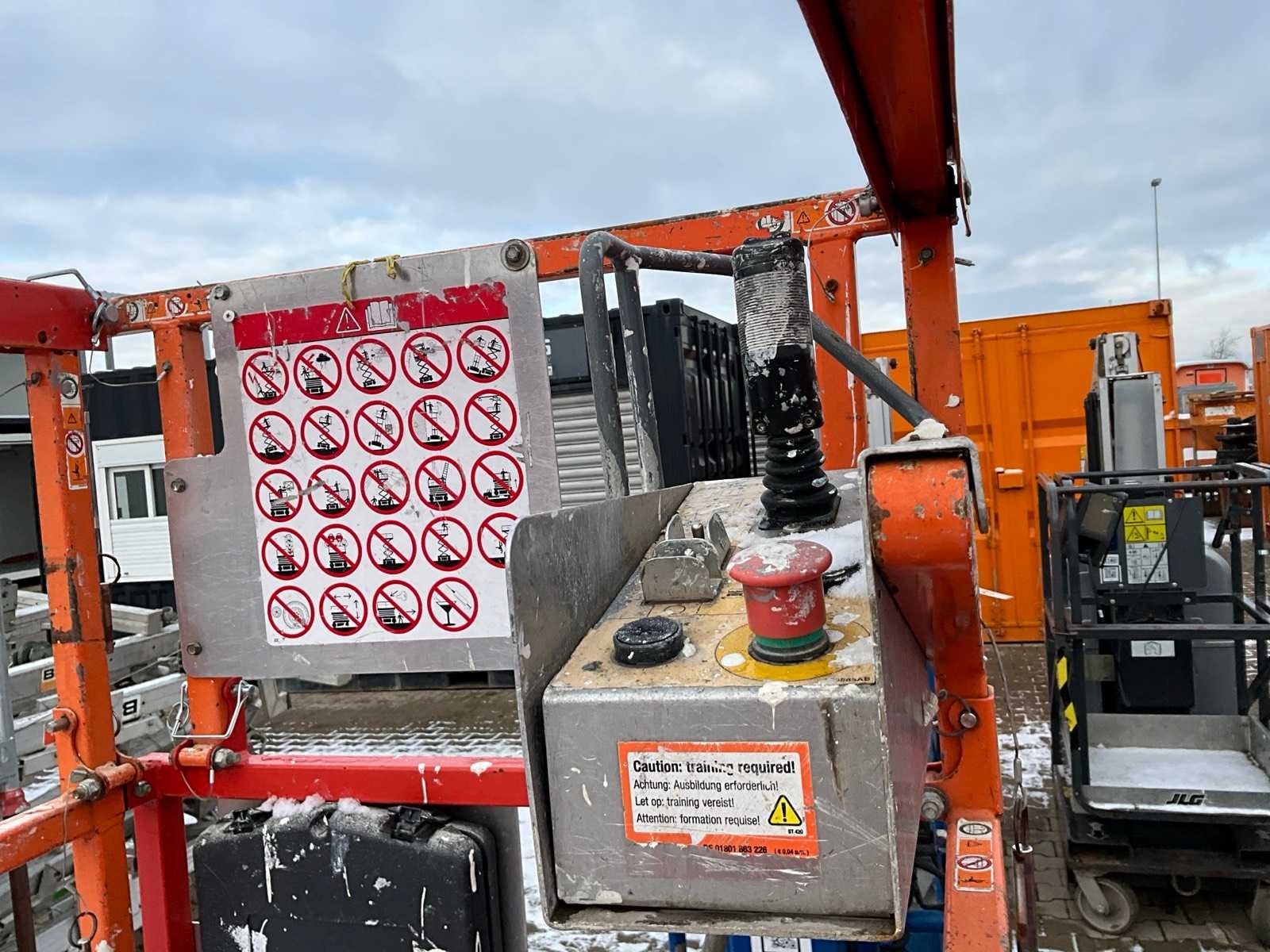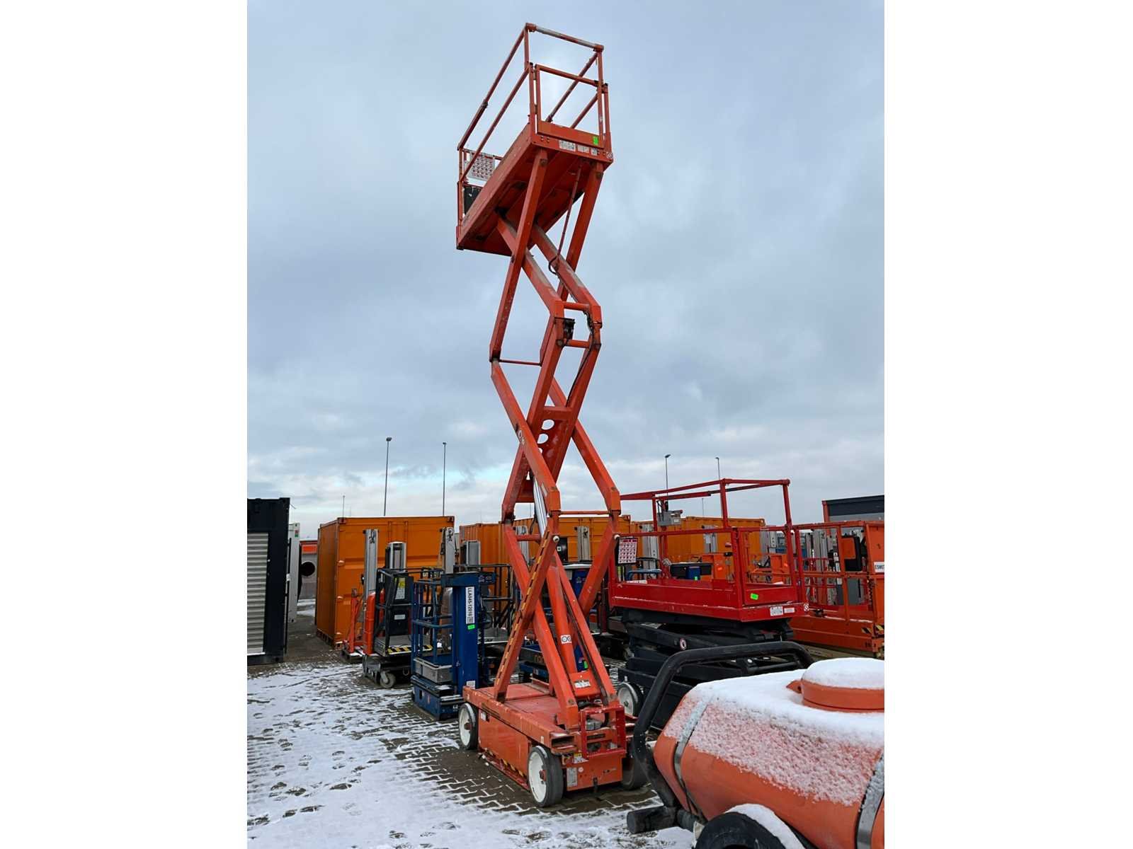 Gebruik: binnen en buiten; platform vloerhoogte 5700 mm; uitschuifbaar platform afmeting circa 2750x750 mm; interne acculader 230 Volt; kooibediening; 230 Volt stroom aansluiting platform; transporthoogte circa 1750 mm; working condition Nee Merk: JLG Type: 1930ES Bouwjaar: 2015 Elektrisch: true Schaarhoogwerker: true Werkhoogte: 7700mm Plateau afm. l: 1850mm Plateau afm. b: 750mm Platform capaciteit: 230kg Afgelezen urenstand: 221 Eigen gewicht: 1565kg Totale afmeting L: 1900mm Totale afmeting Breedte: 800mm Totale afmeting Hoogte: 2050mm