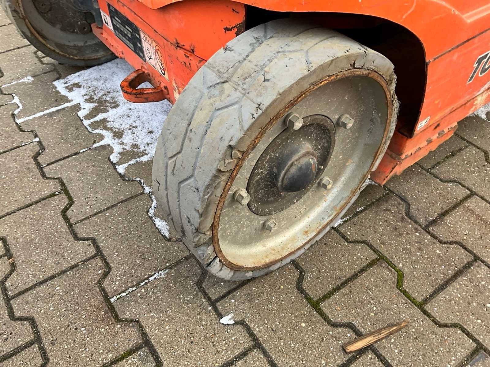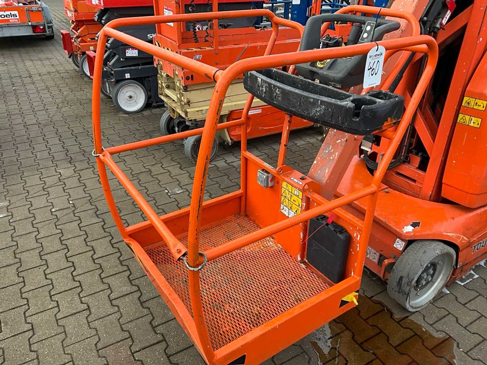 Platform vloerhoogte 8000 mm; kooibediening; 230 Volt kooi stroom aansluiting; ingebouwde acculader; 24 Volt / 230 Volt; not working; foutmelding systeem; Nee Merk: JLG Type: Toucan 10E Bouwjaar: 2014 Elektrisch: true Knikarm hoogwerker: true Masthoogwerker: true Werkhoogte: 10100mm Horizontale rijkwijdte: 3380mm Plateau afm. l: 900mm Plateau afm. b: 700mm Platform capaciteit: 200kg Accu lader: true Afgelezen urenstand: 4420 Eigen gewicht: 3050kg Totale afmeting L: 2850mm Totale afmeting Breedte: 1000mm Totale afmeting Hoogte: 2000mm