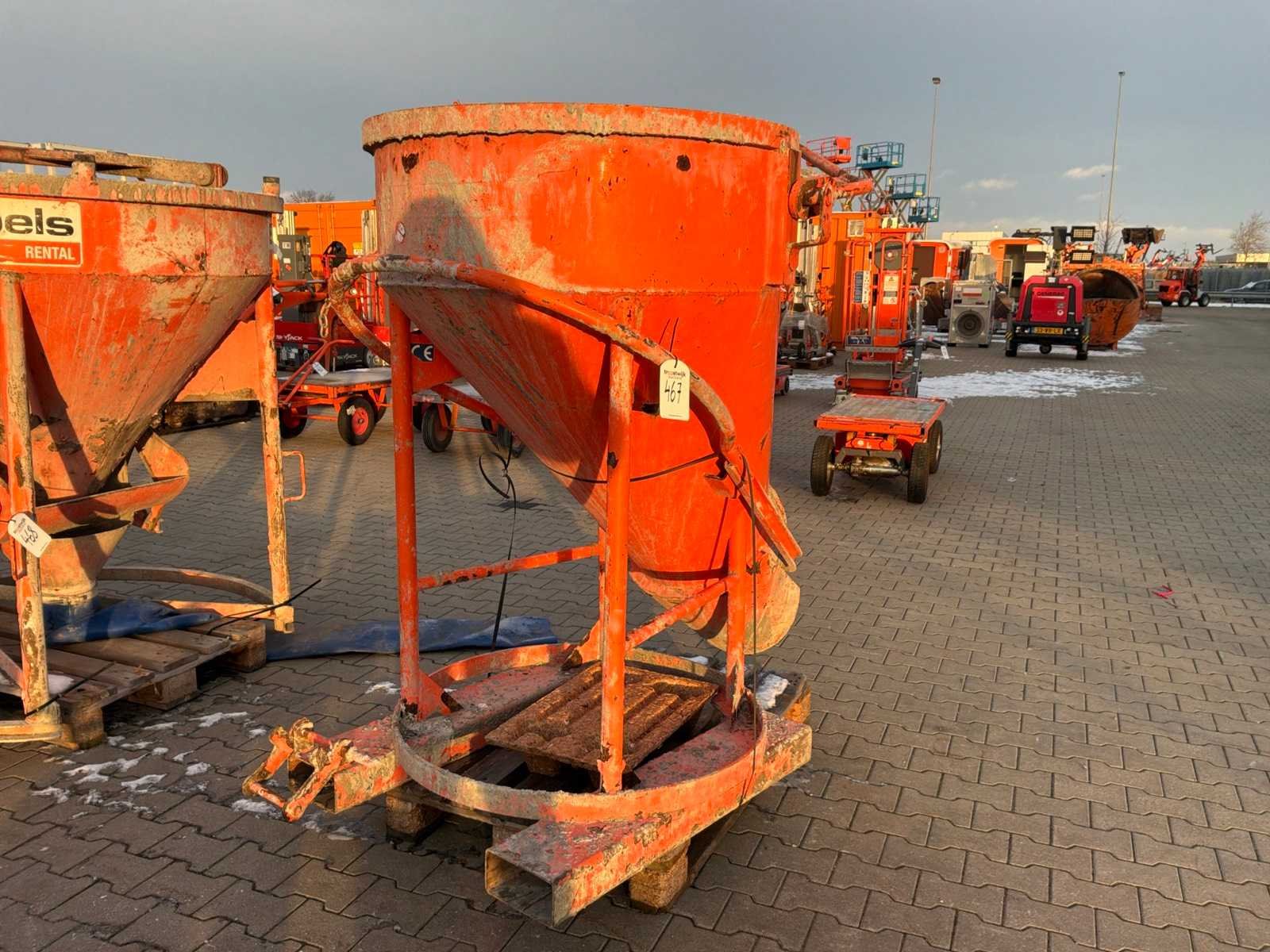 Staand zijlosser; heftruck vorksleuven; gebruiksporen en corrosie; working Nee Merk: Eichinger Type: 1021.8 Inhoud (volume): 500l Totale afmeting L: 1550mm Totale afmeting Breedte: 1200mm Totale afmeting Hoogte: 1800mm