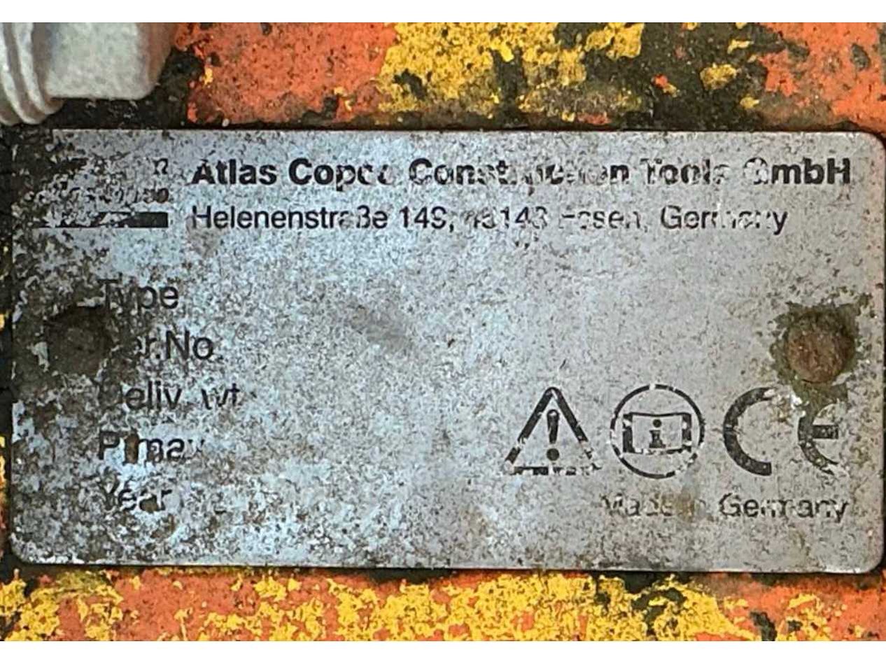 CW 30 snelwissel; gereedschapsdiameter 110 mm; hydraulische aansluitingen; Nee Merk: Atlas Copco Type: MB 1000 Bouwjaar: 2010 Serienummer: 1001 Eigen gewicht: 1365kg Totale afmeting L: 2280mm Totale afmeting Breedte: 670mm Totale afmeting Hoogte: 800mm