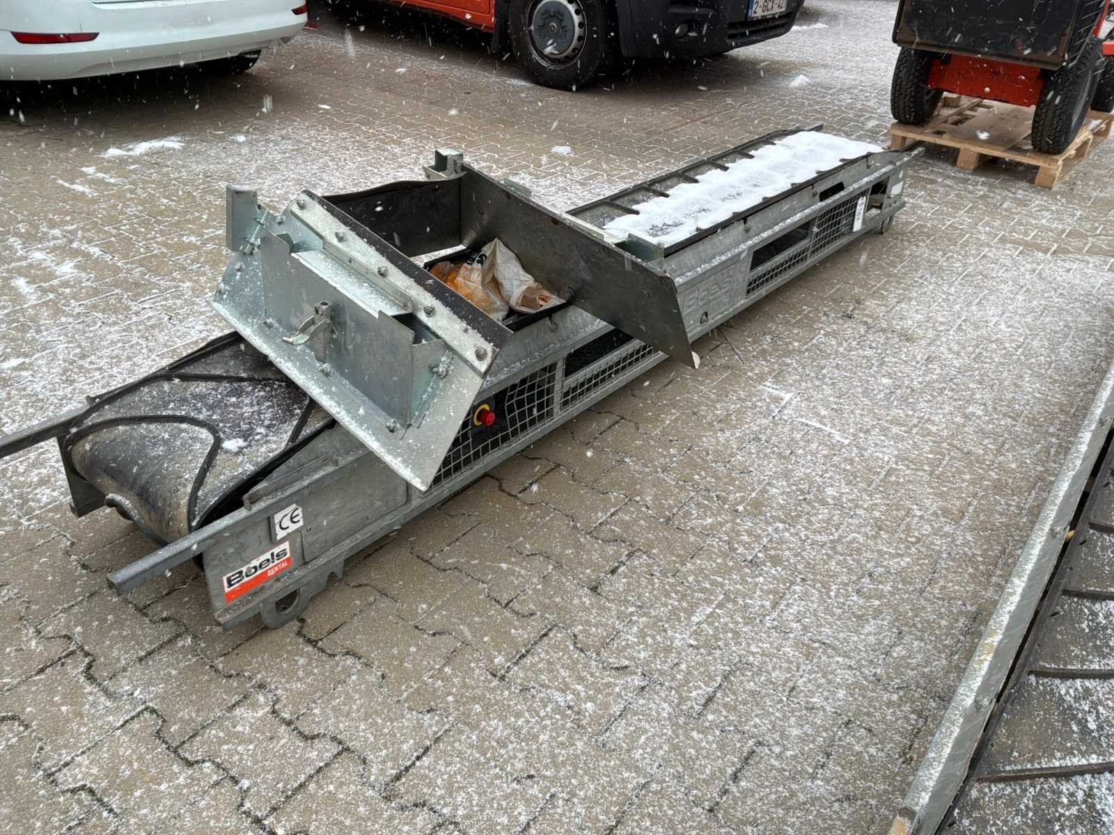 Gegalvaniseerd staal frame; capaciteit 50 ton / uur; snelheid 24 meter / minuut; maximale stijghoek 40°; maximale belasting 150 kg; 370 Watt; inclusief vultrechter; working condition not verified; Nee Merk: Etramo Eigen gewicht: 100kg Aansluiting: 230V Band afm. l: 3000mm Totale afmeting Hoogte: 370mm Band afm. b: 400mm Totale afmeting Breedte: 500mm Totale afmeting L: 3430mm Bouwjaar: 2017 Type: Mini Maxi