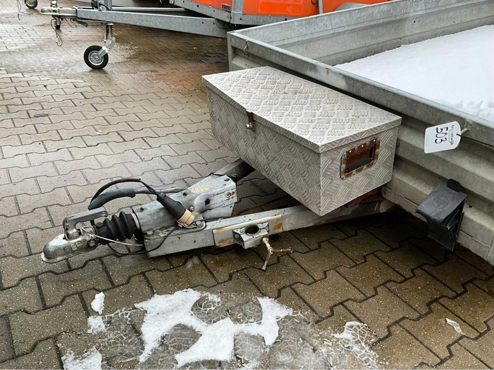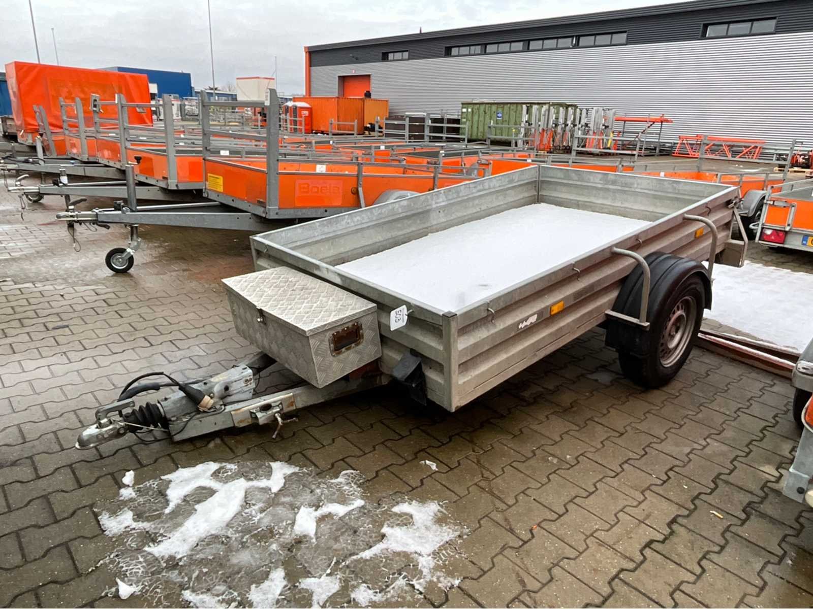 Lengte 3700 mm; breedte 1900 mm; hoogte 900 mm; gegalvaniseerd staal frame; gegalvaniseerd staal schotten; bindogen; geremd; neuswiel gedemonteerd; (de koper dient bij transport over de weg zelf te voorzien in een geldig kenteken; een 7 of 9 polige aansluitstekker of verloopstuk met kabel (verlengsnoer kan ter plaatse tegen betaling aangekocht worden); eventueel extra lichtbalk; Duitse kentekenpapieren; gelijkvormigheidsattest; (M-U8526) Nee Merk: Brennig Type: AH MTH B02 Bouwjaar: 2009 Chassisnummer: W09B021038PM51071 Aantal assen: 1 Laadbak afmeting l: 255cm Laadbak afmeting b: 150cm
