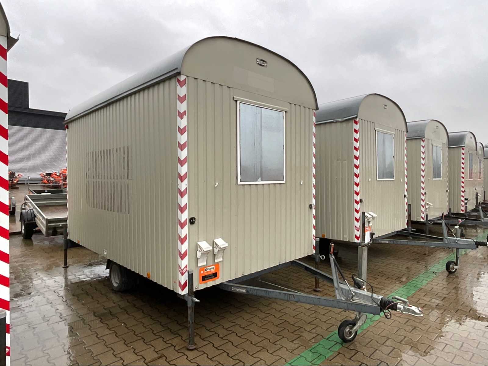 Staalplaat corpus; geremd; neuswiel; 4x stelvoet; kogelkoppeling en transportverlichting; 1x deur; raam voorzien van gegalvaniseerd staal luik; tafel; 2x zitbank; kachel; (de koper dient bij transport over de weg zelf te voorzien in een geldig kenteken; een 7 of 9 polige aansluitstekker of verloopstuk met kabel (verlengsnoer kan ter plaatse tegen betaling aangekocht worden); eventueel extra lichtbalk; Duitse kentekenpapieren; gelijkvormigheidsattest; (M-U2747) Nee Merk: Weiro Holzbau Bauwagen Type: Rasant 350 Bouwjaar: 2015 Chassisnummer VIN: W09351113GWH37946 Afmeting l: 3520mm Afmeting b: 2110mm Afmeting h: 2450mm Aantal ramen: 1 Totale afmeting L: 5120mm Totale afmeting Breedte: 2110mm Totale afmeting Hoogte: 2930mm